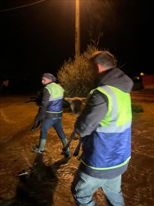 İzmir Büyükşehir Belediyesi ekipleri, sağanak yağış nedeniyle oluşan su baskınlarıyla mücadele ederken, Torbalı’da mahsur kalan hayvanları kurtardı.