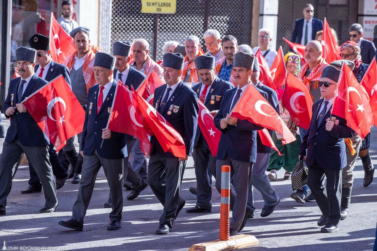 Saatler 11.15’i gösterdiğinde Cumhuriyet Meydanı’nda resmi kutlama töreni düzenlenecek. Halk oyunları ve İzmir Büyükşehir Belediyesi Bando Performansının da olacağı törenin ardından saat 17.00’de süvari birlikleri Cumhuriyet Meydanı’ndan Gündoğdu Meydanı’na yürüyüş gerçekleştirecek. Gündoğdu Meydanı, saat 18.10’da Türk Yıldızları gösterisine sahne olacak. Çok sayıda İzmirlinin katılacağı kutlamalarda, saat 18.45’te ise Solo Türk gösterisi yapılacak. İzmirliler, saat 20.15’te 350 metre uzunluğundaki Türk bayrağı ile fener alayı yürüyüşüne katılacak. Yürüyüşte, Cumhuriyet Meydanı trafik yolu üzerinde hilal şekli oluşturulacak.