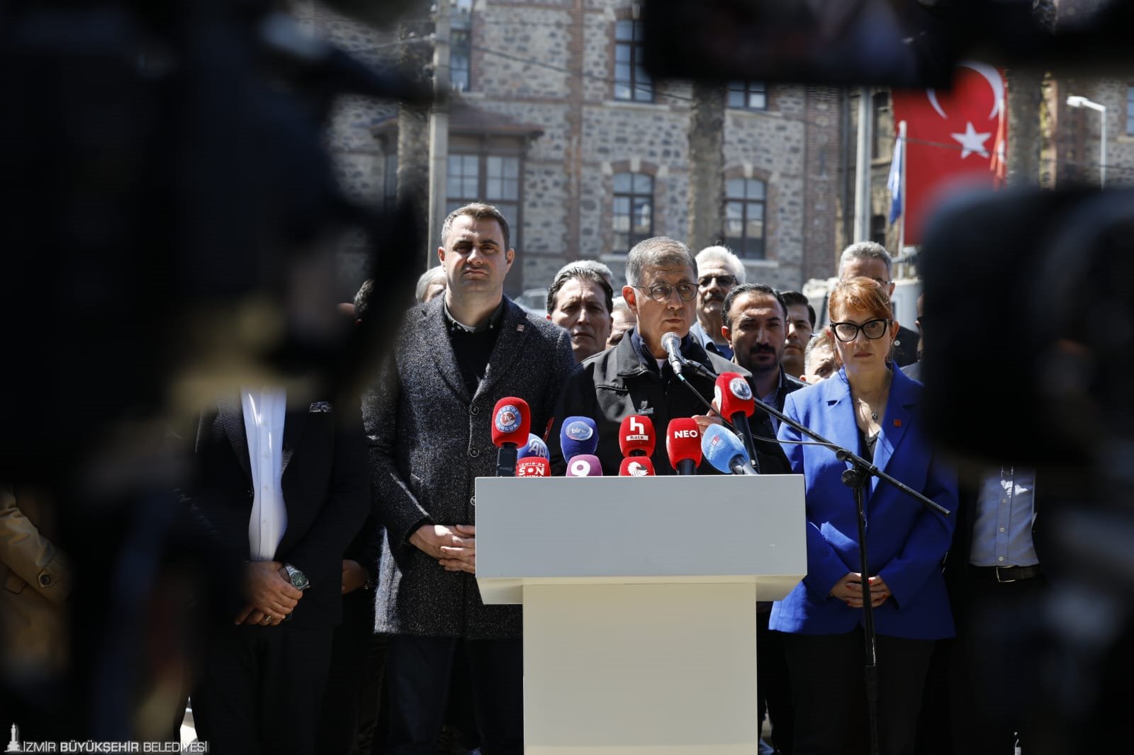 “İçeride belediyeye ait yüz milyonlarca liralık kamu malına el konuldu. Çalışanlarımızın kişisel eşyalarını almalarına izin verilmedi. Üstelik bu bina tescilli bir kültür binasıdır ve dün zarar gördü. Vakıflar, binaları korumak için böyle uygulamalar yapıyor iddiasında bulunuyor, ama uygulanan yöntemle bina zarar gördü. Kapılar tokmakla zorlanarak kırıldı ve değiştirildi. Yetkisi olmayan özel güvenlik girişleri engelledi. Hukuki tespit yapılması bile engellendi. Tespitler sırasında kameraların çalışmaması için binanın elektriği kesildi. Vakıflar’ın özel güvenlik görevlilerinden biri, Atatürk imzalı tapu belgesi pankartını, tahliyeye tepki gösteren vatandaşları tahrik etmek amacıyla keserek aşağı atmış. Açık ve nettir ki, ortada mülkiyeti tartışmalı bir yapı, devam eden bir dava ve beklenen bir yargı süreci var. Tüm bunlar varken, sabahın erken saatlerinde polis ablukasıyla yapılan bu işlemi ‘hukuk çerçevesinde’ yapılan bir işlem olarak tanımlayamayız. İzmir, hukuk şehridir ve bu şehir, oldu bittilere teslim edilemez.”