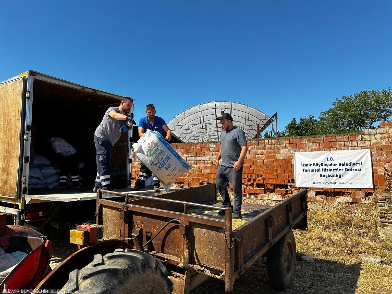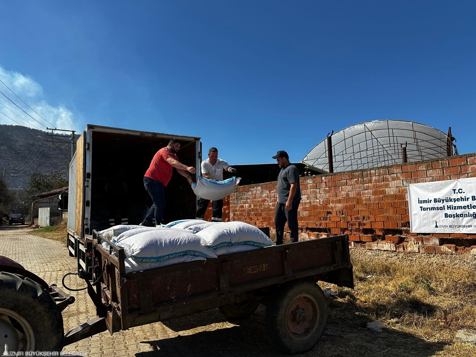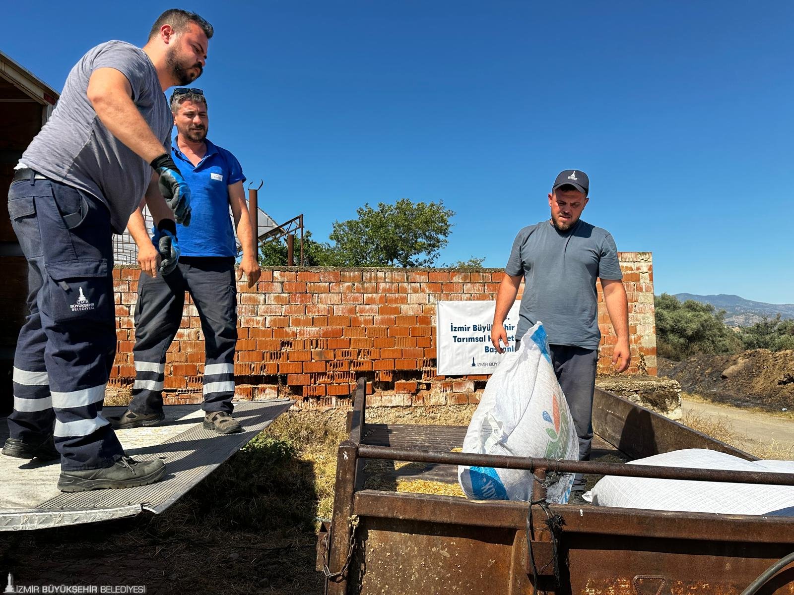 İzmir Büyükşehir Belediyesi Tarımsal Hizmetler Dairesi Başkanlığı, yangından etkilenen kırsal alanlarda tarımsal üretim zararını tespit etmek amacıyla yangının çıktığı ilk andan itibaren tüm ekipleri ile sahada yer aldı. Gerçekleştirilen ön hasar tespitleri sonunda daire başkanlığı tarafından Başkan Tugay'ın ziyaretinin hemen ardından yemleri ve meraları yanan, büyükbaş ve küçükbaş hayvan yetiştiriciliği yapan üreticilere yem desteği sağlandı. Geçtiğimiz hafta Foça Ilıpınar Mahallesi'ne 2,5 ton kesif yem dağıtan Büyükşehir, Ödemiş Karadoğan Mahallesi'ne ise 5 ton kesif yem ve 8 ton kaba yem dağıtımı gerçekleştirdi. İlk aşamada toplamda 7,5 ton kesif yem, 8 ton kaba yem üreticilere teslim edildi. Üreticilere destekler, soğutma çalışmaları tamamlandıktan sonra artarak devam edecek.