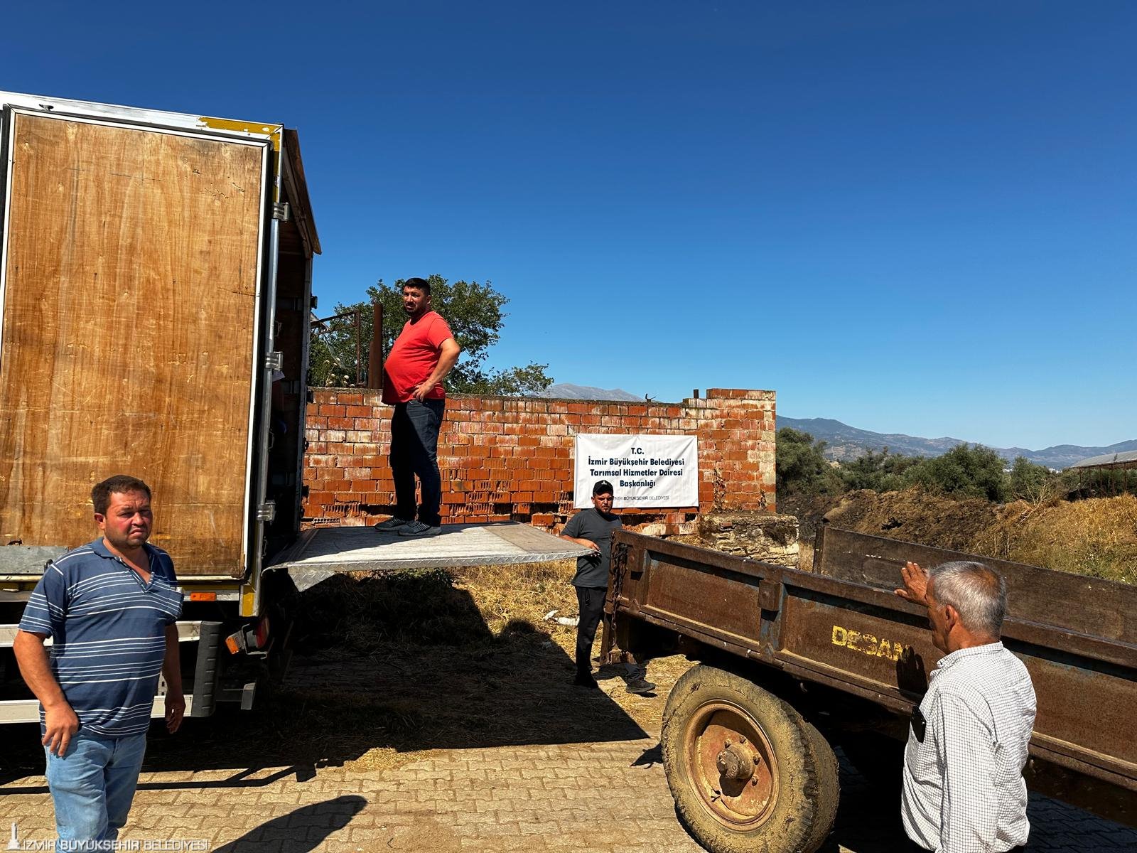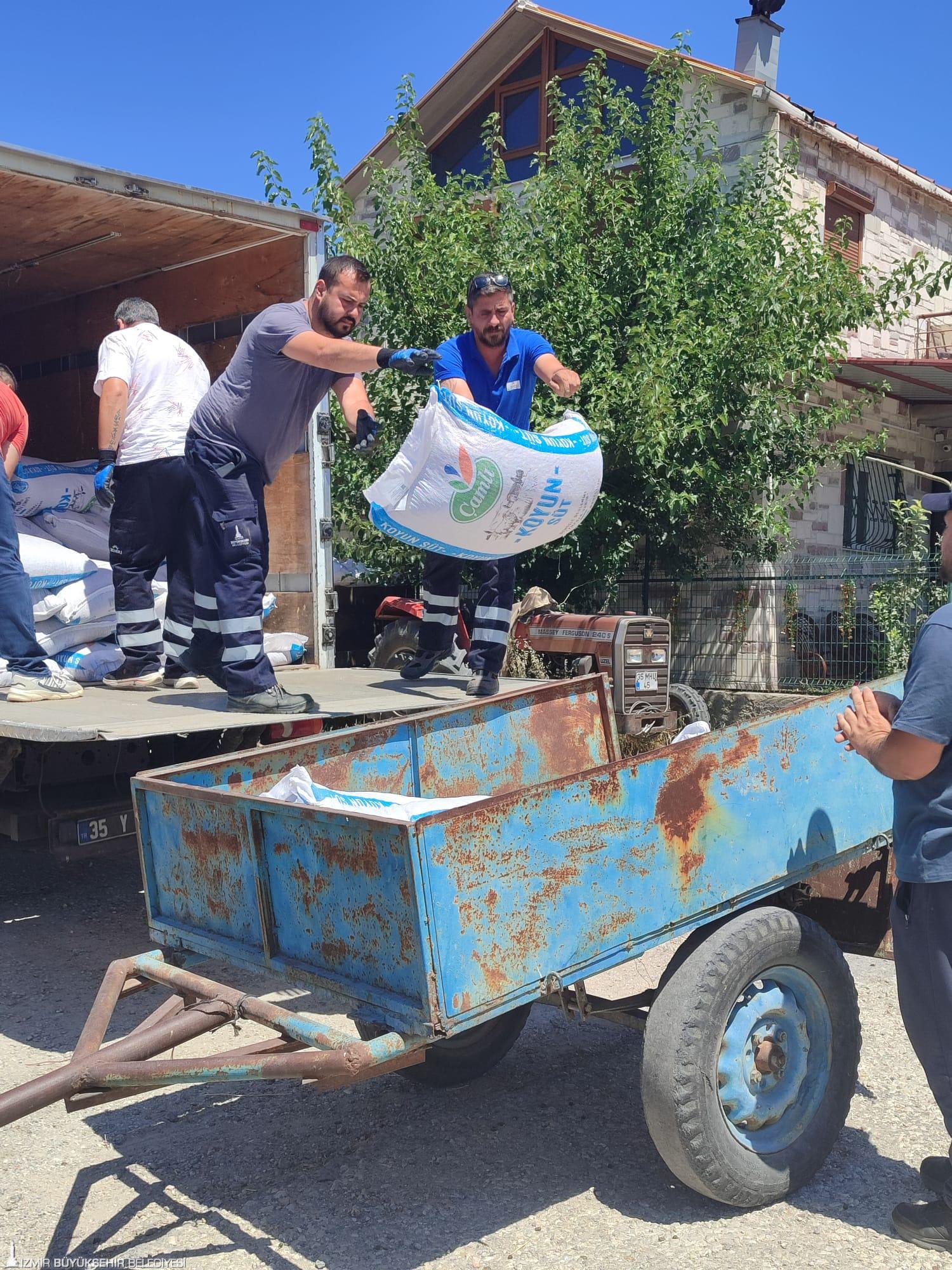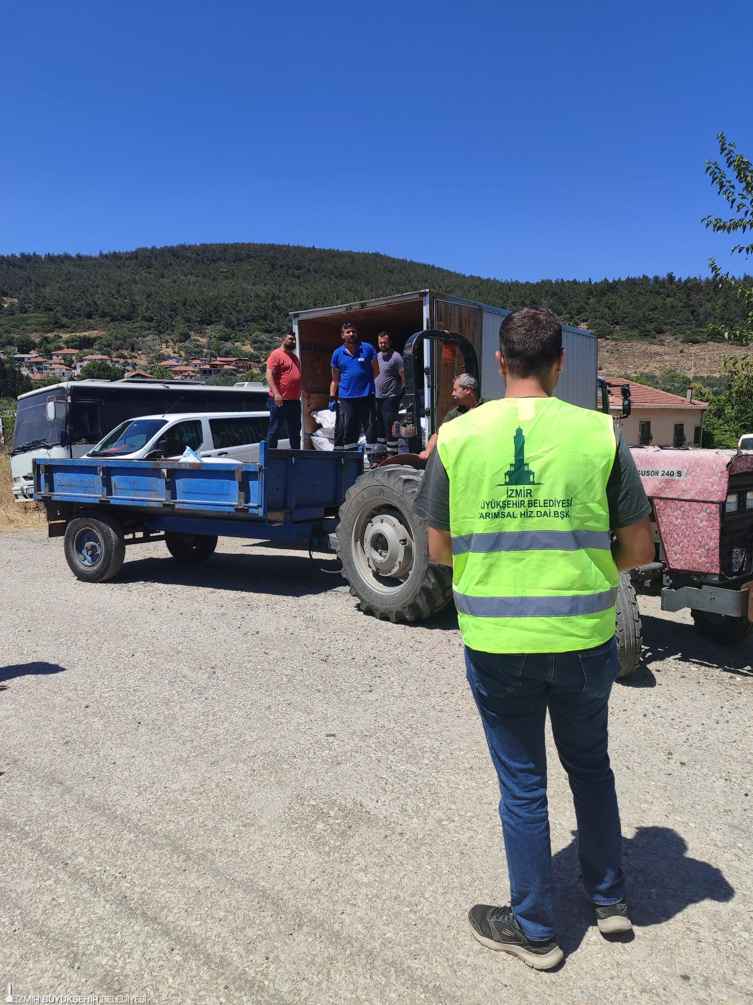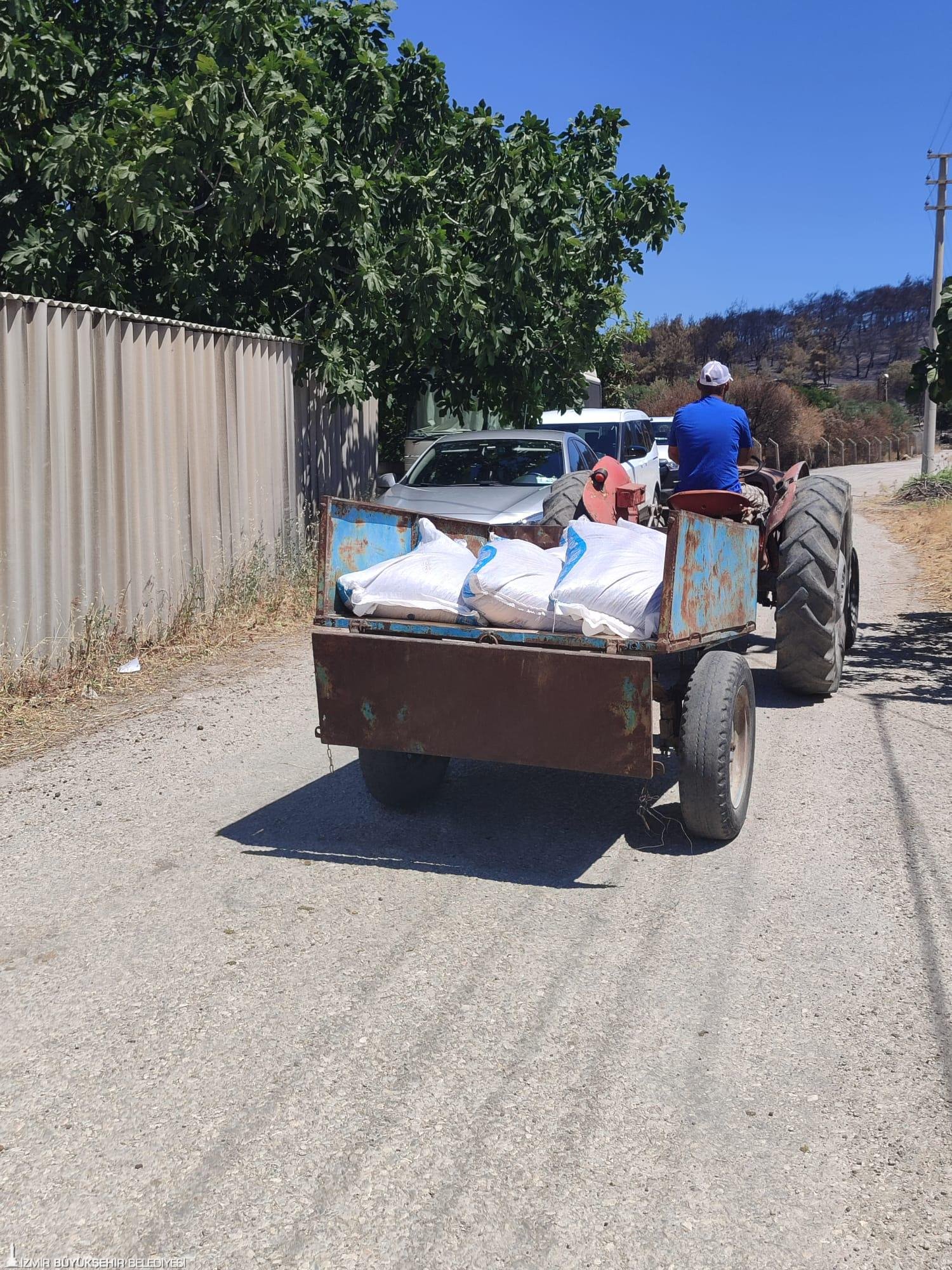 İzmir Büyükşehir Belediyesi Tarımsal Hizmetler Dairesi Başkanlığı, yangından etkilenen kırsal alanlarda tarımsal üretim zararını tespit etmek amacıyla yangının çıktığı ilk andan itibaren tüm ekipleri ile sahada yer aldı. Gerçekleştirilen ön hasar tespitleri sonunda daire başkanlığı tarafından Başkan Tugay'ın ziyaretinin hemen ardından yemleri ve meraları yanan, büyükbaş ve küçükbaş hayvan yetiştiriciliği yapan üreticilere yem desteği sağlandı. Geçtiğimiz hafta Foça Ilıpınar Mahallesi'ne 2,5 ton kesif yem dağıtan Büyükşehir, Ödemiş Karadoğan Mahallesi'ne ise 5 ton kesif yem ve 8 ton kaba yem dağıtımı gerçekleştirdi. İlk aşamada toplamda 7,5 ton kesif yem, 8 ton kaba yem üreticilere teslim edildi. Üreticilere destekler, soğutma çalışmaları tamamlandıktan sonra artarak devam edecek.