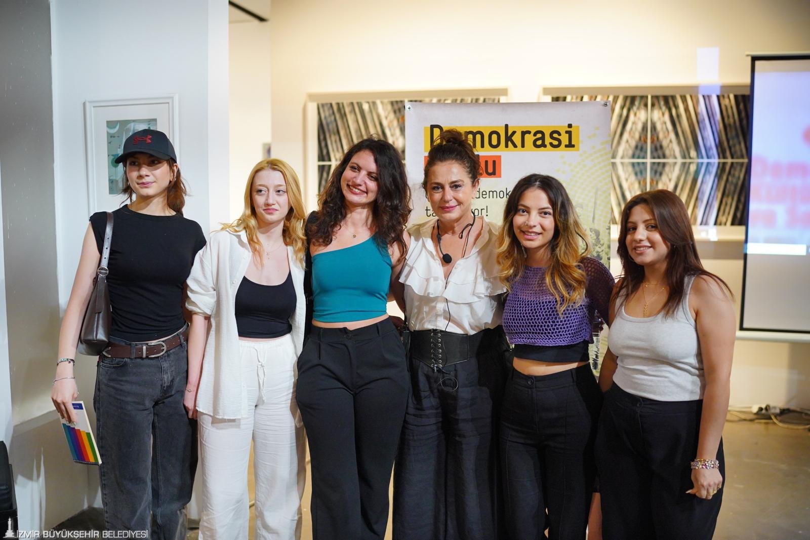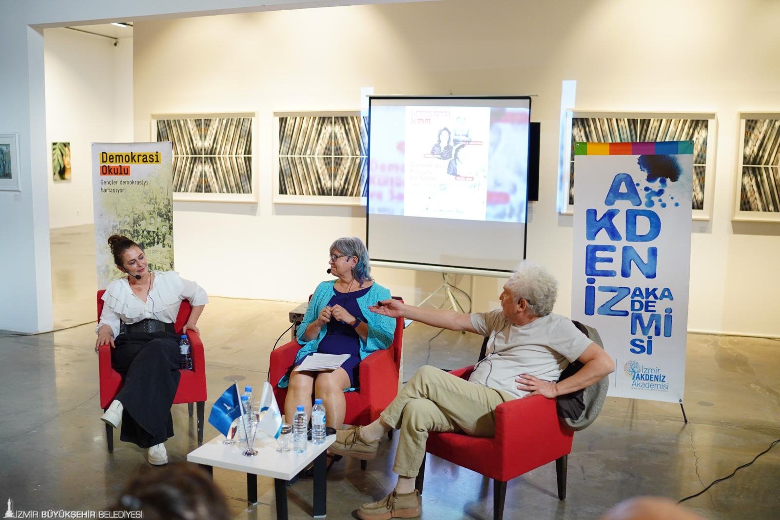 İzmir Büyükşehir Belediyesi Kültür ve Sosyal İşler Dairesi Başkanlığı’na bağlı faaliyet gösteren İzmir Akdeniz Akademisi, düzenlediği Demokrasi Okulu’nun ikinci dersinde sanat ve demokrasi ilişkisine odaklandı. Kültürpark Atlas Pavyonu’nda yapılan etkinlikte, akademisyen Prof. Dr. Sevda Alankuş moderatörlüğünde oyuncu Nazan Kesal ve yönetmen Yüksel Aksu gençlerle buluştu. Sanat ve demokrasi ilişkisinde özgürlük, direniş ve ifade biçimleri, yeni teknolojilerin taşıdığı olanaklar gibi konuların ele alındığı ders büyük ilgi gördü.
