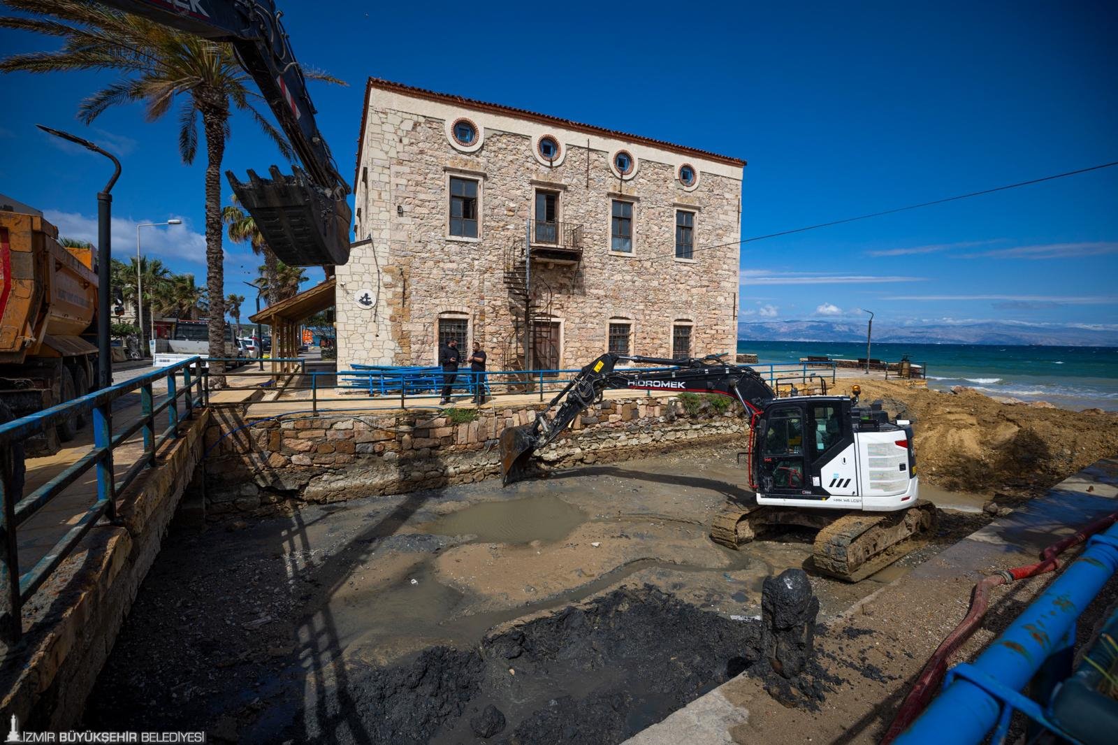 Yağışlı dönem öncesinde dere yataklarında düzenleme çalışmaları yapılırken, kıyı oyulmalarını önlemek için anroşman taş imalatları sürdürülüyor. Urla İçmeler Mahallesi Malkoca Deresi ile Karapınar, Pınarlı ve Çakal derelerinin deniz çıkış ağızlarındaki çalışmalar tamamlandı. Nisan ayında Çeşme Durmuş Deresi deniz çıkışı ile Menderes Ahmetbeyli ve Karaburun Parlak Deresi’ndeki imalatların tamamlanması planlanıyor. İZSU ekiplerinin bu çalışmaları, son dönemde etkili olan yoğun yağışlarda da fayda sağladı. Yarımada Dereler Birimi, kış sezonunda taşkın riskini azaltmak ve can-mal güvenliğini sağlamak amacıyla çalışmalarını kesintisiz sürdürüyor.