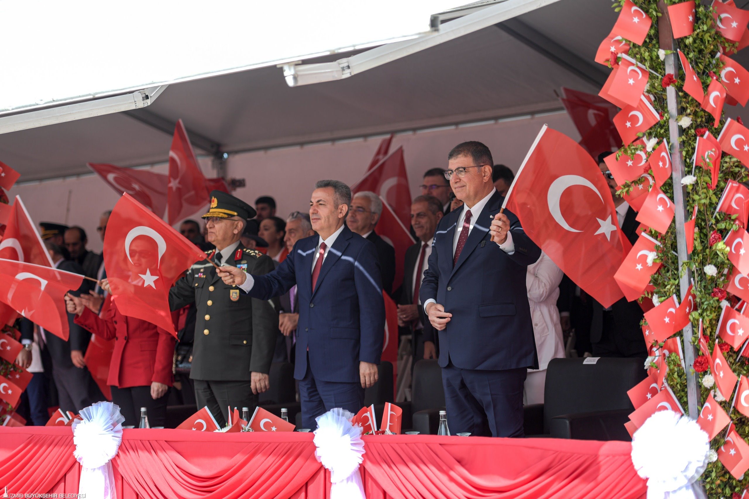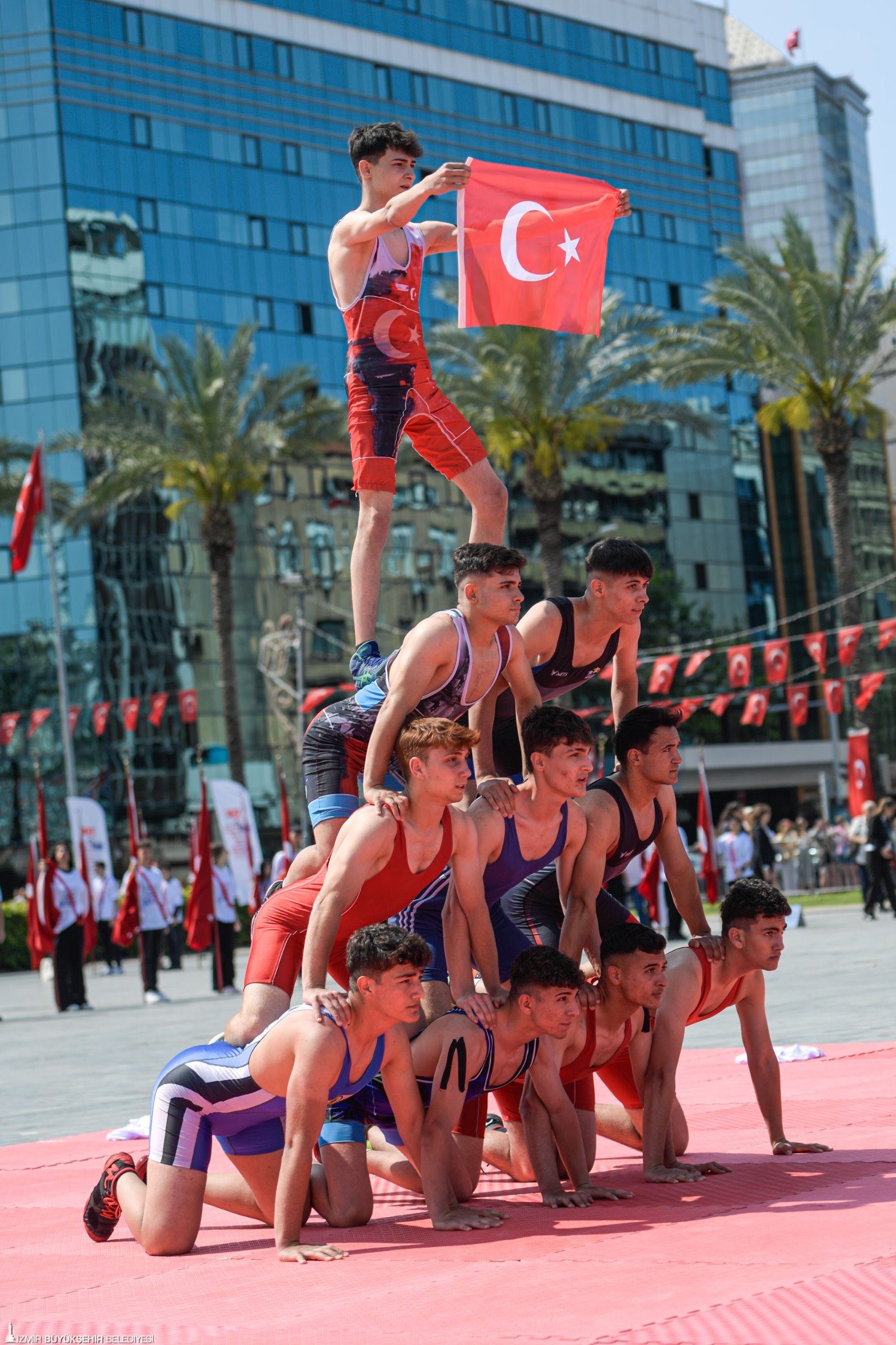 Konuşmaların ardından öğrenciler şiir okudu. Törende İzmir Yüksek Teknoloji Üniversitesi Halk Dansları, Dokuz Eylül Üniversitesi Folklor toplulukları ile İzmir Gençlik ve Spor İl Müdürlüğü tekvando grubu gösterileri büyük ilgi gördü. Güreş, ritmik jimnastik gösterileri ise nefes kesti. Tören Türk bayrakları ile Atatürk fotoğrafının yer aldığı Türk bayrakları eşliğinde sporcuların ve İzmirliler’in meydanda oluşturduğu coşkulu görüntü ile sona erdi.
