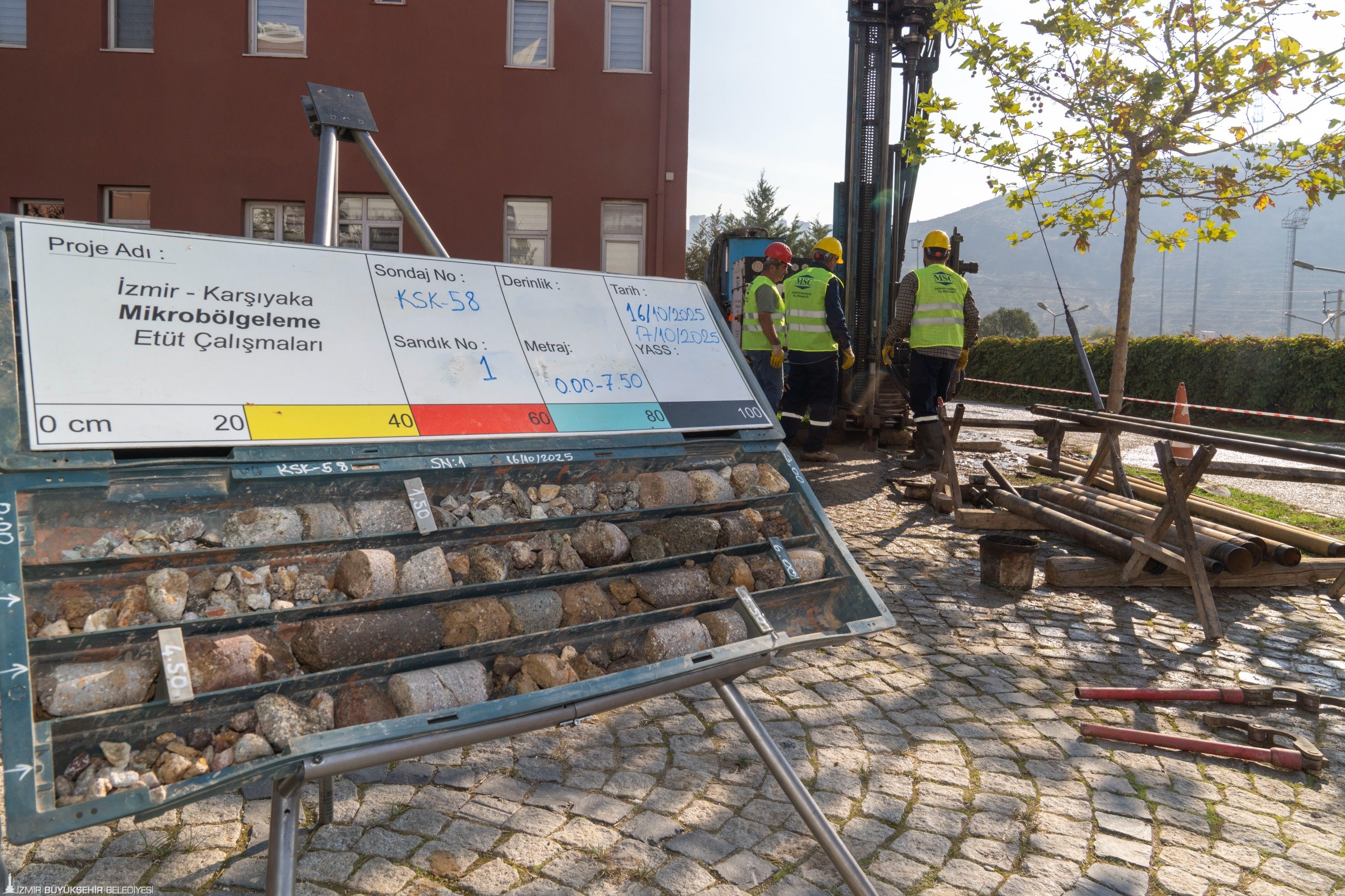 İzmir Büyükşehir Belediyesi Afet İşleri Dairesi Başkanlığı tarafından deprem ve heyelan riski başta olmak üzere kentin olası afetlerden etkilenmemesi için sürdürülen çok yönlü çalışmalar devam ediyor. Yapı envanteri, zemin çalışmaları, kara ve denizde yapılan depremsellik araştırmaları, kente dair önemli verilerin elde edilmesini sağlıyor. Bornova’da 7 bin hektarlık alanda saha çalışmalarını tamamlayan ekiplerin mikrobölgeleme için yeni adresi ise Karşıyaka oldu. İzmir Büyükşehir Belediyesi’nin Örnekköy Sosyal Tesisleri ile Mustafa Kemal Mahallesi’nde sondaj makineleri ile zeminden numune alındı. Uzmanlar, ilçede yaklaşık 2 bin hektarlık alanı bu yöntemle inceleyecek.