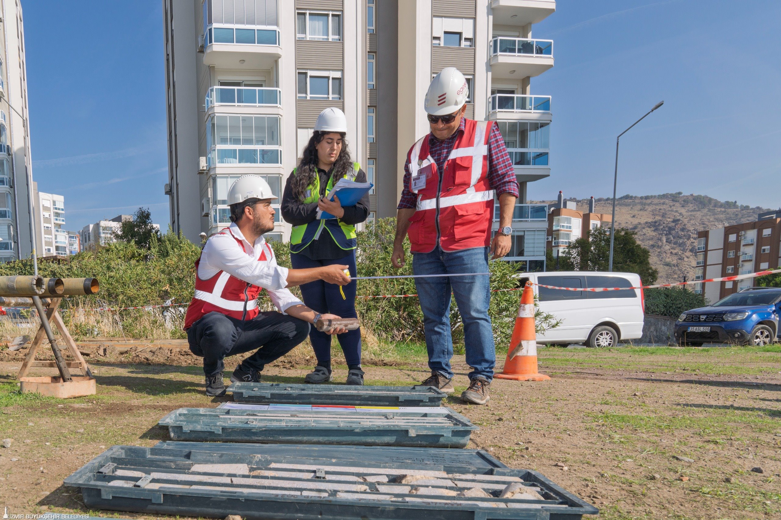 İzmir Büyükşehir Belediyesi Afet İşleri Dairesi Başkanlığı Afet ve Risk Yönetimi Şube Müdürü Tolga Oktay Gül, Bornova’da 7 bin hektarlık alanda saha çalışmalarını tamamladıklarını, raporlamaların devam ettiğini söyledi. Gül, Karşıyaka’da da yerel zemin koşullarının ve geoteknik (zemin davranışının incelenmesi) parametrelerin daha iyi anlaşılması için Egeşehir şirketi ile kapsamlı mikrobölgeleme çalışmalarına başladıklarını belirtti.