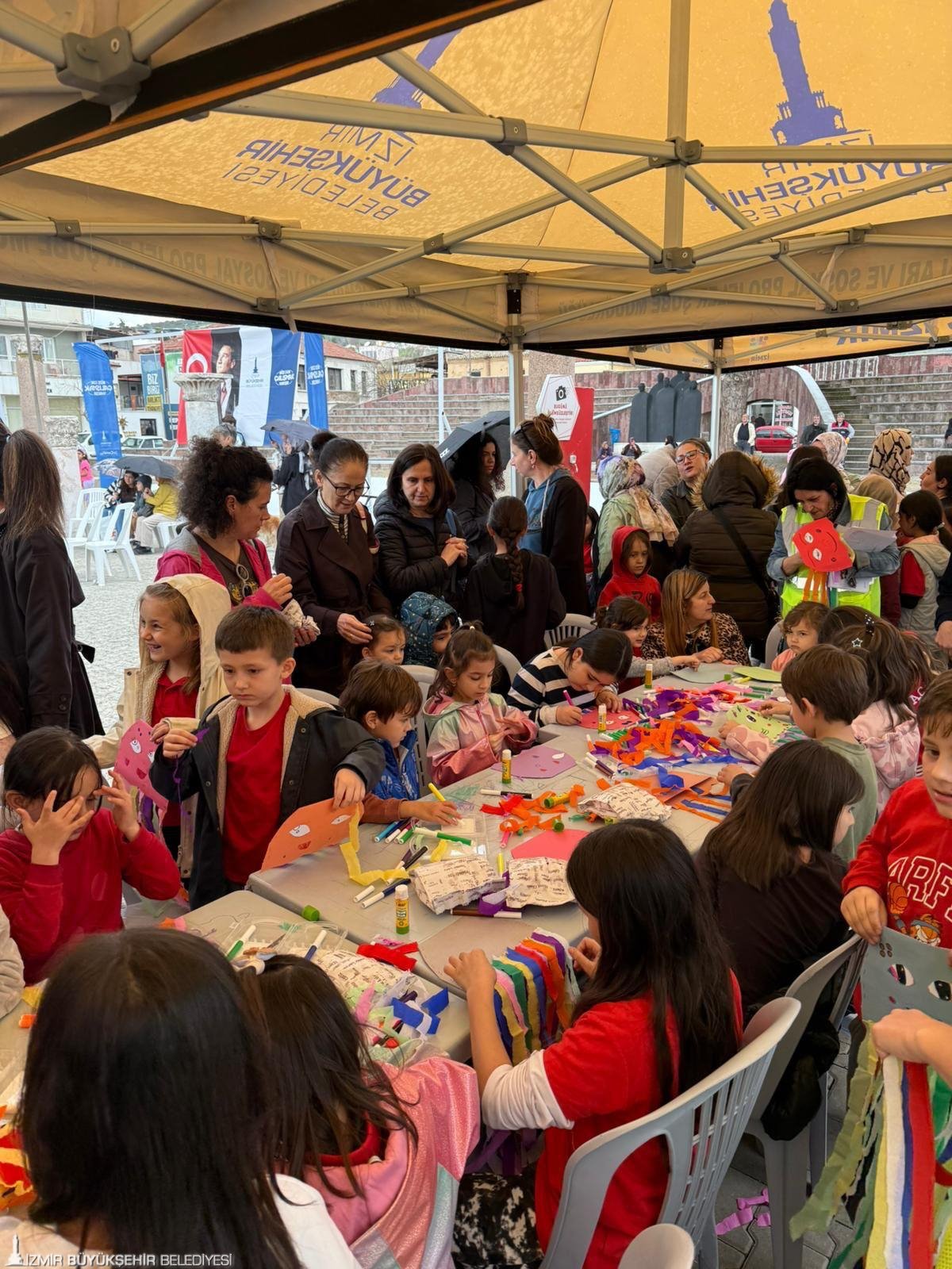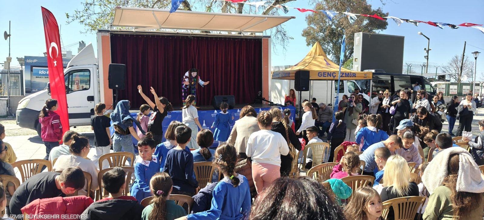Bayraklı Orgeneral Nafiz Gürman Parkı, Çiğli Sado Turgay Tekin Parkı, Bergama Cumhuriyet Meydanı ve Dikili Atatürk Meydanı’nda kurulan sahneler, çocukların yoğun ilgisiyle karşılandı. Renkli görüntülerin yaşandığı etkinlik programında; pandomim gösterileri, sihirbazlık illüzyonları, kukla şovları ve çocuk konserleri yer aldı. Eğlenceli gösterilerin yanı sıra kurulan atölyelerde çocuklar hem yeteneklerini sergiledi hem de yaratıcı vakit geçirdi.