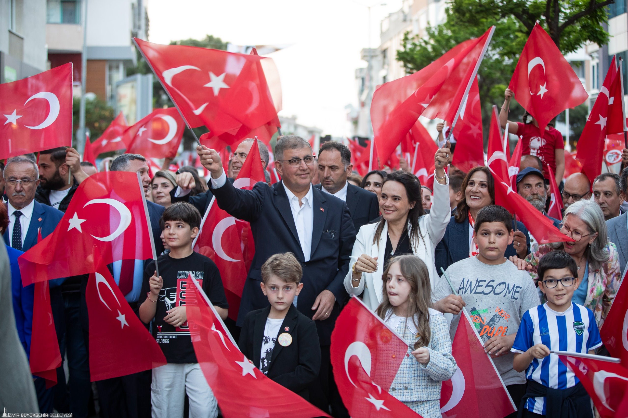 İzmir Büyükşehir Belediyesi ve Gaziemir Belediyesi iş birliğinde düzenlenen 27. Gaziemir Ulusal Çocuk Şenliği, muhteşem bir 23 Nisan kortejine sahne oldu. Bini aşkın İzmirli ellerinde Türk bayraklarıyla marşlar söyleyerek 23 Nisan Ulusal Egemenlik ve Çocuk Bayramı’nı kutladı. İzmir Büyükşehir Belediye Başkanı Dr. Cemil Tugay ve eşi Öznur Tugay, Gaziemir Belediye Başkanı Ünal Işık ve eşi Deniz Işık korteje katılarak İzmirlilerle bayramlaştı. Kortejin en önünde ise 23 Nisan'da Gaziemir Belediye Başkanlığı ve Başkan Yardımcılığı makamına temsilen oturan Ege Kayaklı ile Duru Naz Karaboğa yer aldı. Renkli görüntülerin oluştuğu kortejle Gaziemir sokakları gelincik tarlasını andırdı.