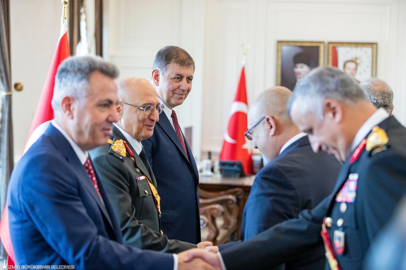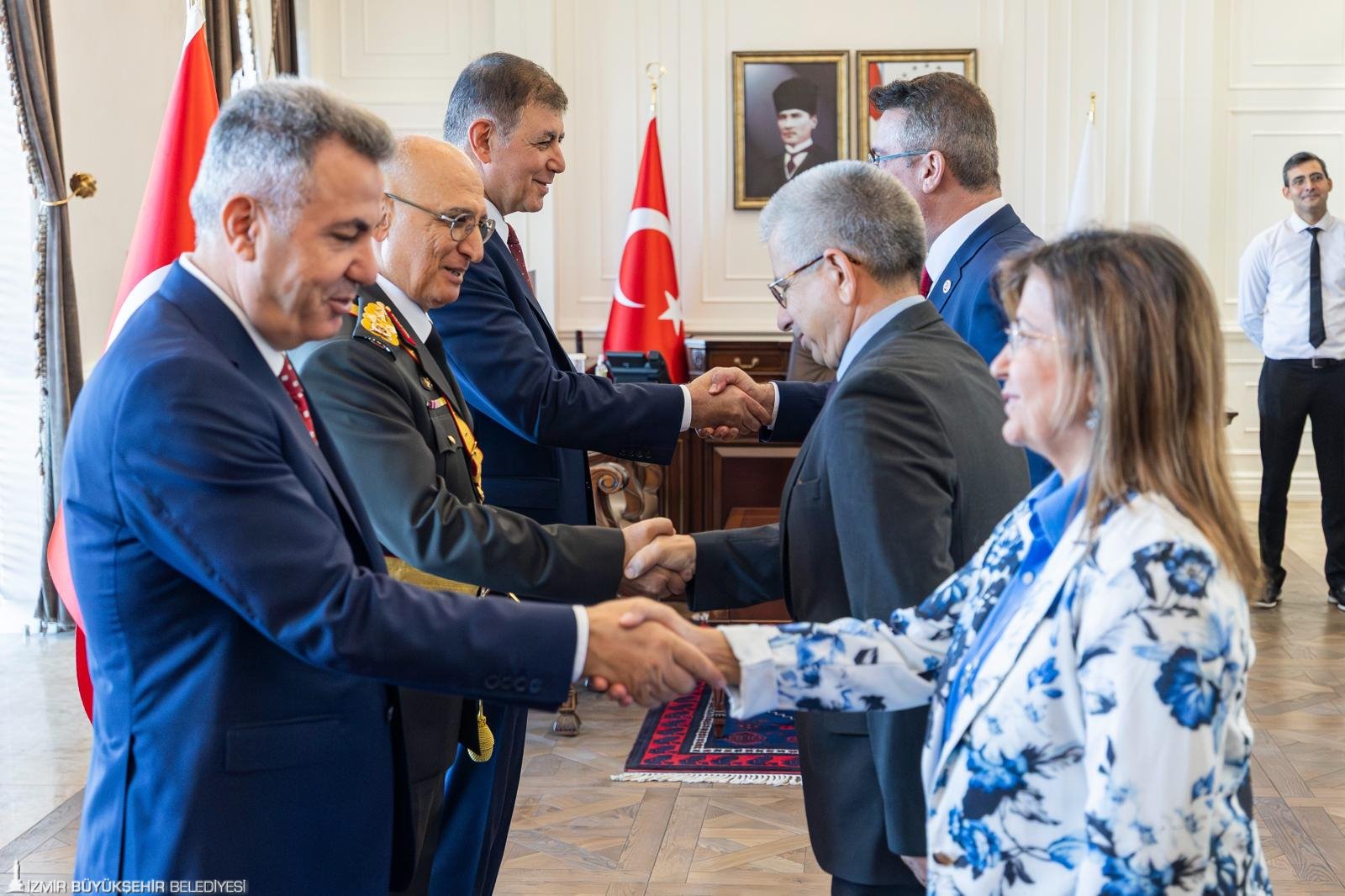 İzmir Büyükşehir Belediye Başkanı Dr. Cemil Tugay, 30 Ağustos Zafer Bayramı kutlamaları kapsamında, İzmir Valiliği'nde düzenlenen tebrikat törenine de katıldı. Başkan Dr. Cemil Tugay, İzmir Valisi Dr. Süleyman Elban, Ege Ordusu Garnizon Komutanı Orgeneral İrfan Özsert ile tebrikleri kabul etti.