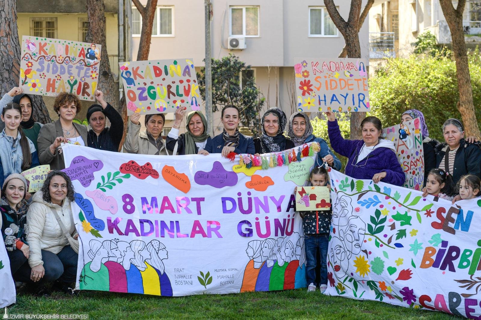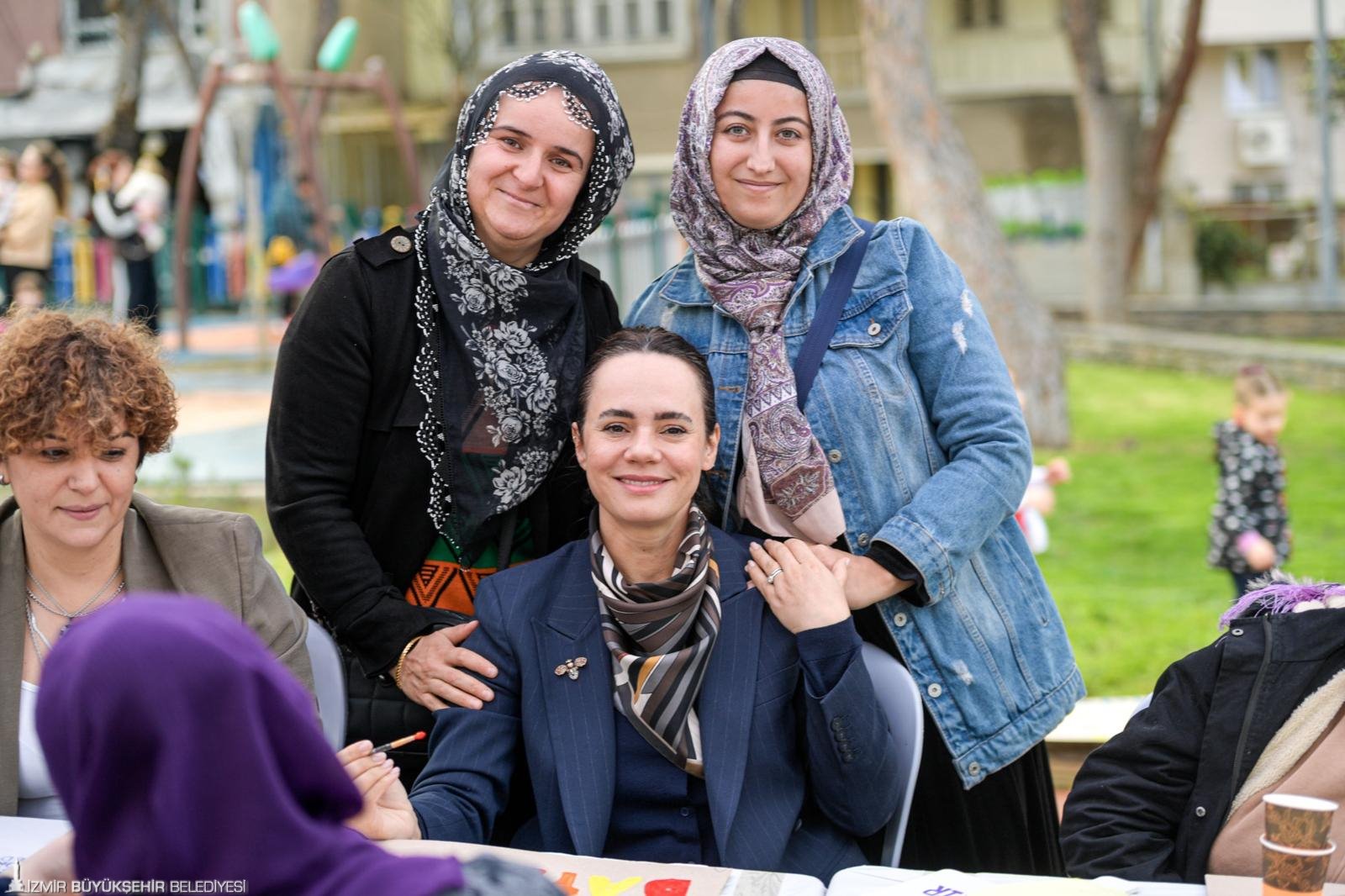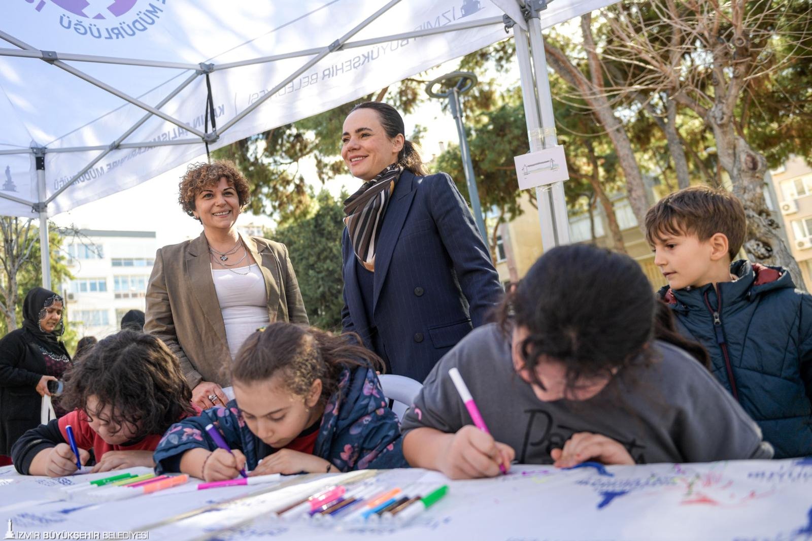 Etkinliğe katılan Fatime İnal “Kadın haklarının savunucusuyuz. Burada pankartları eğlenerek yapıyoruz. Çok mutluyuz, iyi ki böyle etkinlikler var” derken, Sadegül Bozbala da “Kadın sağlığı ile ilgili konuşuyoruz, çocuklar oynuyor. Kadınlarla ilgili pankart yapıyoruz. Çeşit çeşit çiçekler, kelebekler çiziyoruz. Dünya Kadınlar Günü’nü kutluyoruz. Kadına şiddete ‘hayır’ diyoruz. İzmir Büyükşehir Belediyesi’ne etkinlikler için teşekkür ediyoruz” dedi.