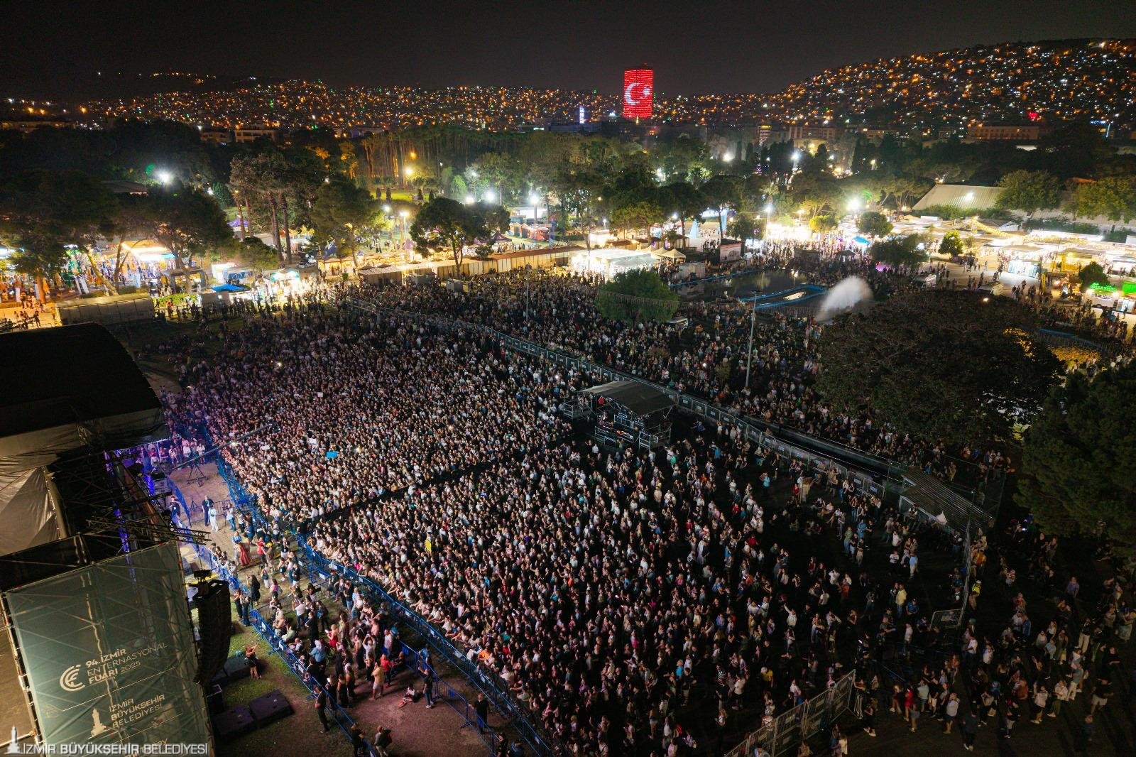 İzmir Büyükşehir Belediyesi’nin ev sahipliğinde İZFAŞ tarafından “Fuar Şehrin Kalbinde” sloganıyla düzenlenen 94. İzmir Enternasyonal Fuarı, ziyaretçilerine Çim Konserleri ile müzik dolu akşamlar yaşatmaya devam ediyor. Çim Konserleri, fuarın 7. gününde Türk rock müziğinin sevilen grubu Gripin’i ağırladı. Migros sponsorluğunda sahne alan Gripin, izleyicilere enerjik ve keyifli bir performans sundu. “Aşk Nereden Nereye?”, “Yalnızlığın Çaresini Bulmuşlar”, “Belki Çok Da Şey Yapmamak Lazım“, “Durma Yağmur Durma” gibi sevilen şarkılarını seslendiren Gripin, iki saati aşkın süre sahnede kaldı. Gruba, binlerce müziksever hep bir ağızdan eşlik etti.