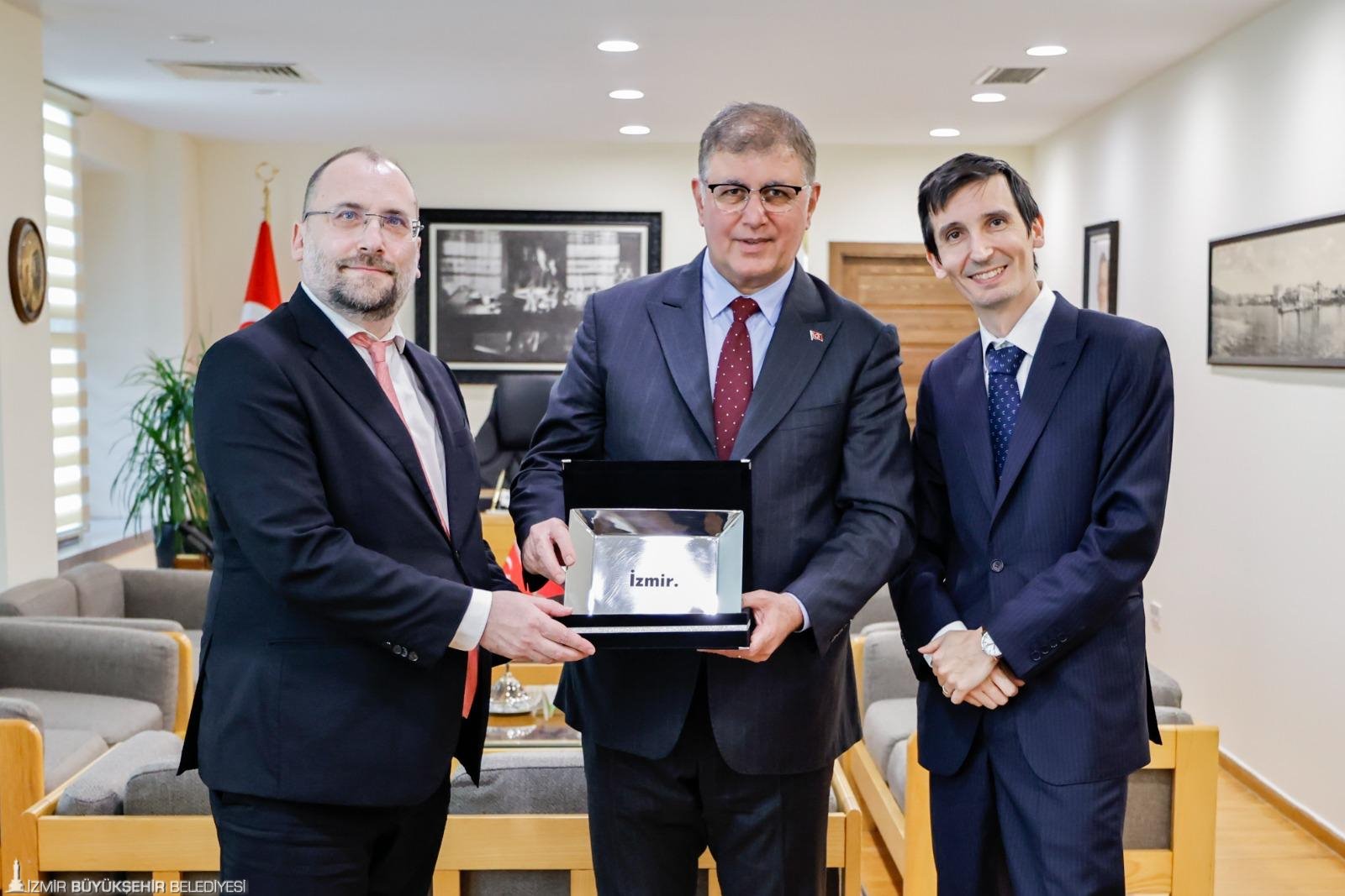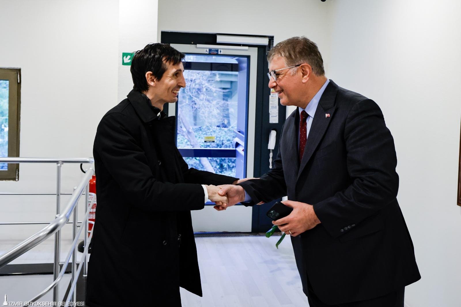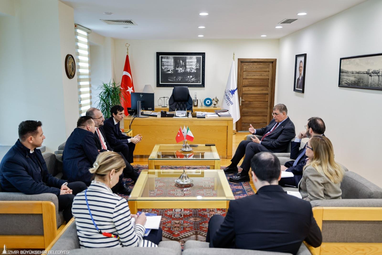İtalya Dışişleri Bakanlığı Bakanlık ve Yurtdışı Temsilcilikler Müsteşarı Ivo Polacco ve İtalya'nın İzmir Konsolosu Daniele Bianchi, İzmir Büyükşehir Belediye Başkanı Dr. Cemil Tugay’ı ziyaret etti. İzmir Büyükşehir Belediyesi Genel Sekreteri Ramazan Tezcan, İzmir Büyükşehir Belediyesi Dış İlişkiler Dairesi Başkanı Gökçe Başkaya ve bürokratların yer aldığı görüşmede İtalya ve İzmir arasındaki ilişkiler ve ilerleyen süreçte yapılabilecekler konuşuldu.