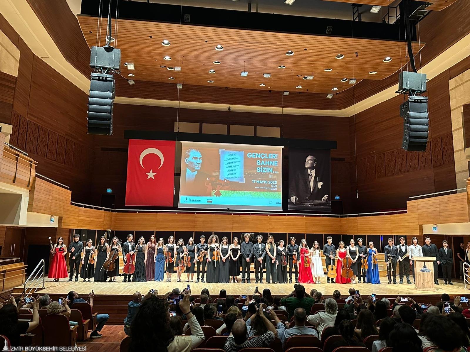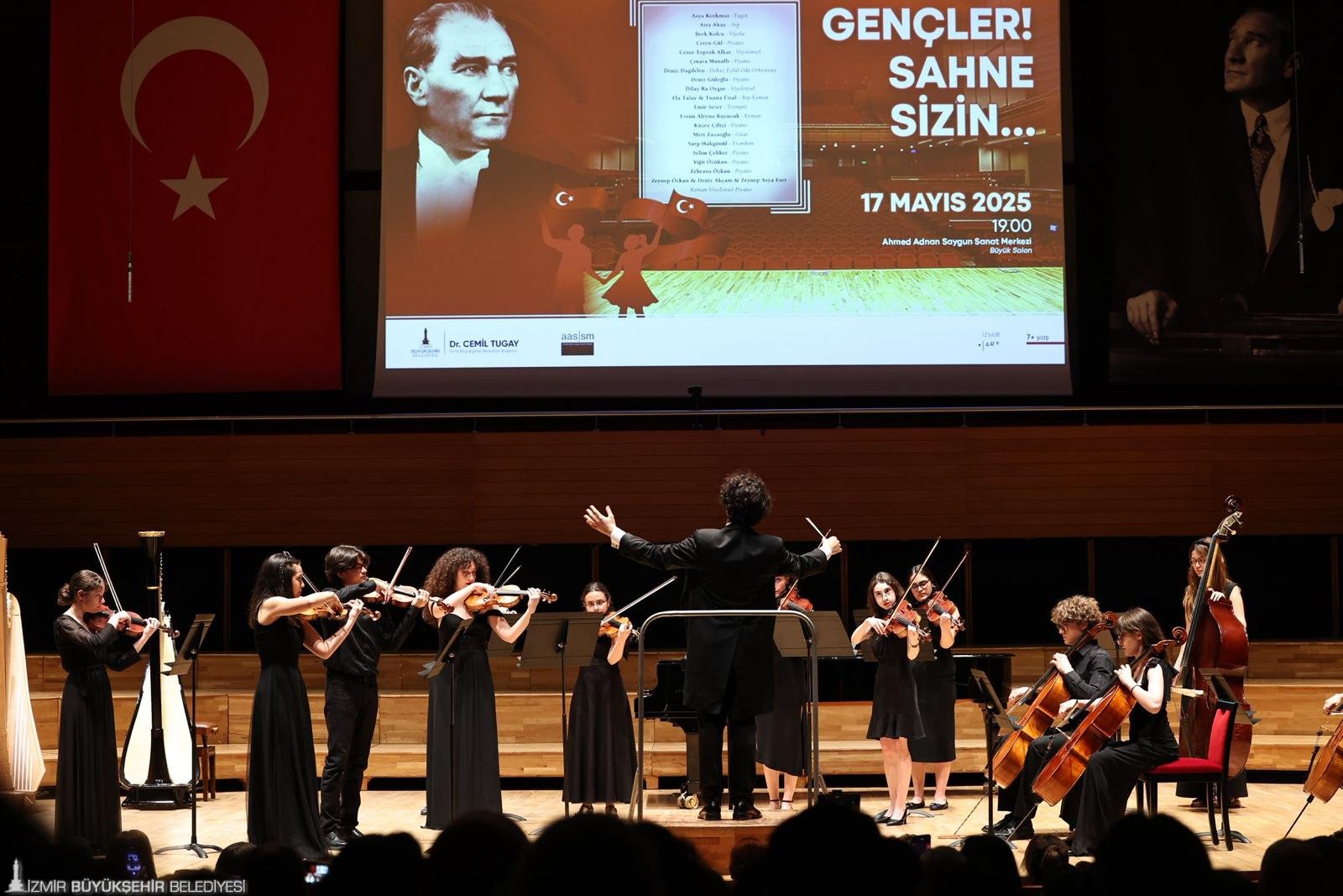 İzmir Büyükşehir Belediyesi Ahmed Adnan Saygun Sanat Merkezi (AASSM), 19 Mayıs Atatürk'ü Anma, Gençlik ve Spor Bayramı'na özel yaptığı etkinlikler kapsamında sahnesini genç müzisyenlere açtı. “Gençler Sahne Sizin” adıyla gerçekleştirilen konserde onlarca genç sahne aldı. Şef Deniz Dağdelen’in yönetimindeki Dokuz Eylül Oda Orkestrası eşliğinde sahneye gelen gençler teker teker dünya klasik müziğinin birbirinden değerli eserleriyle performanslarını sergiledi. AASSM Büyük Salon’da düzenlenen konsere gençlerin aileleri, yakınlarının yanı sıra çok sayıda sanatsever katıldı.