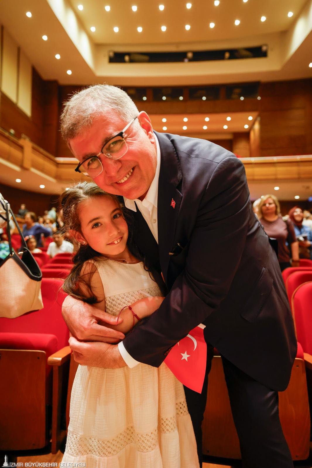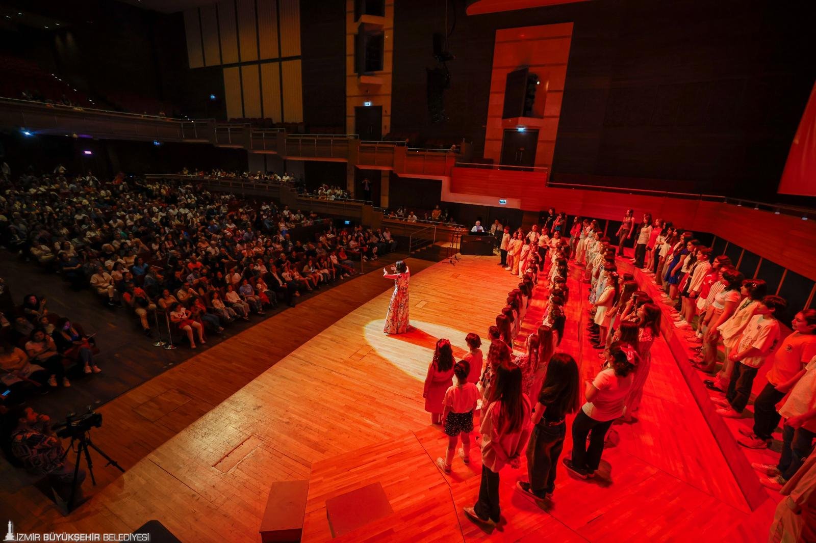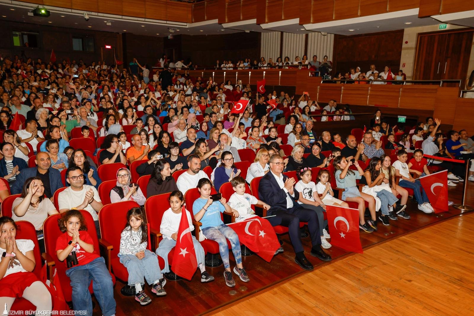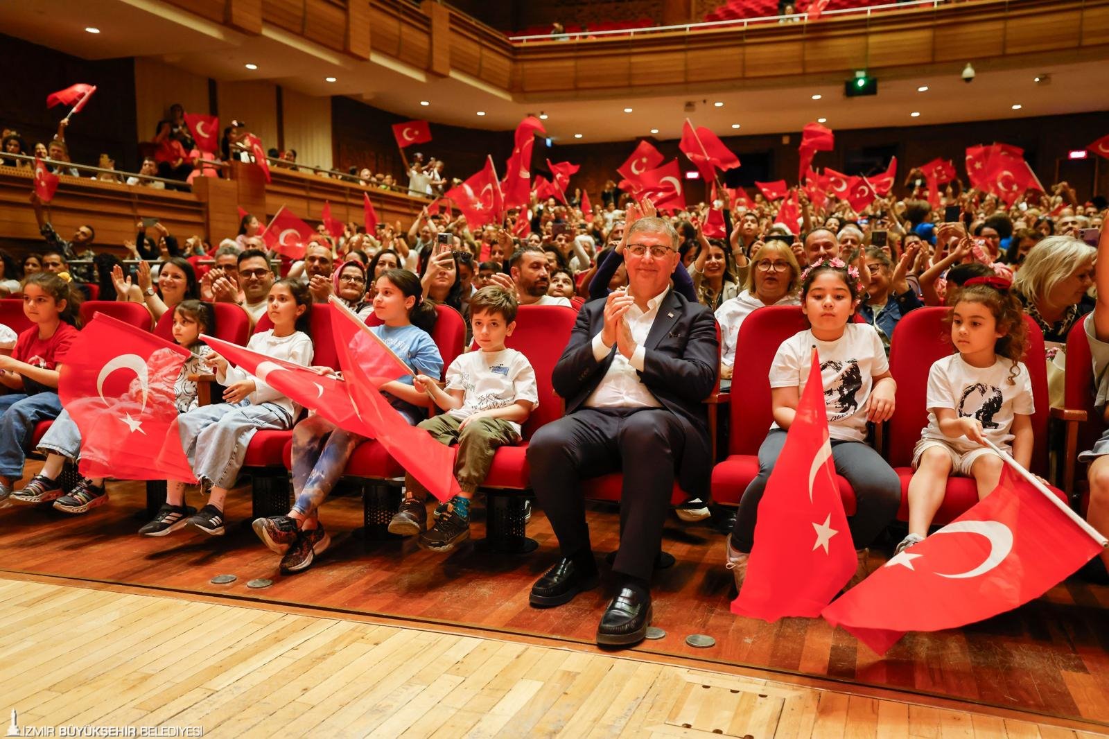 Konser sonunda İzmir Büyükşehir Belediye Başkanı Dr. Cemil Tugay ve tüm salon ellerinde Türk bayraklarıyla 23 Nisan şarkısı söyledi.