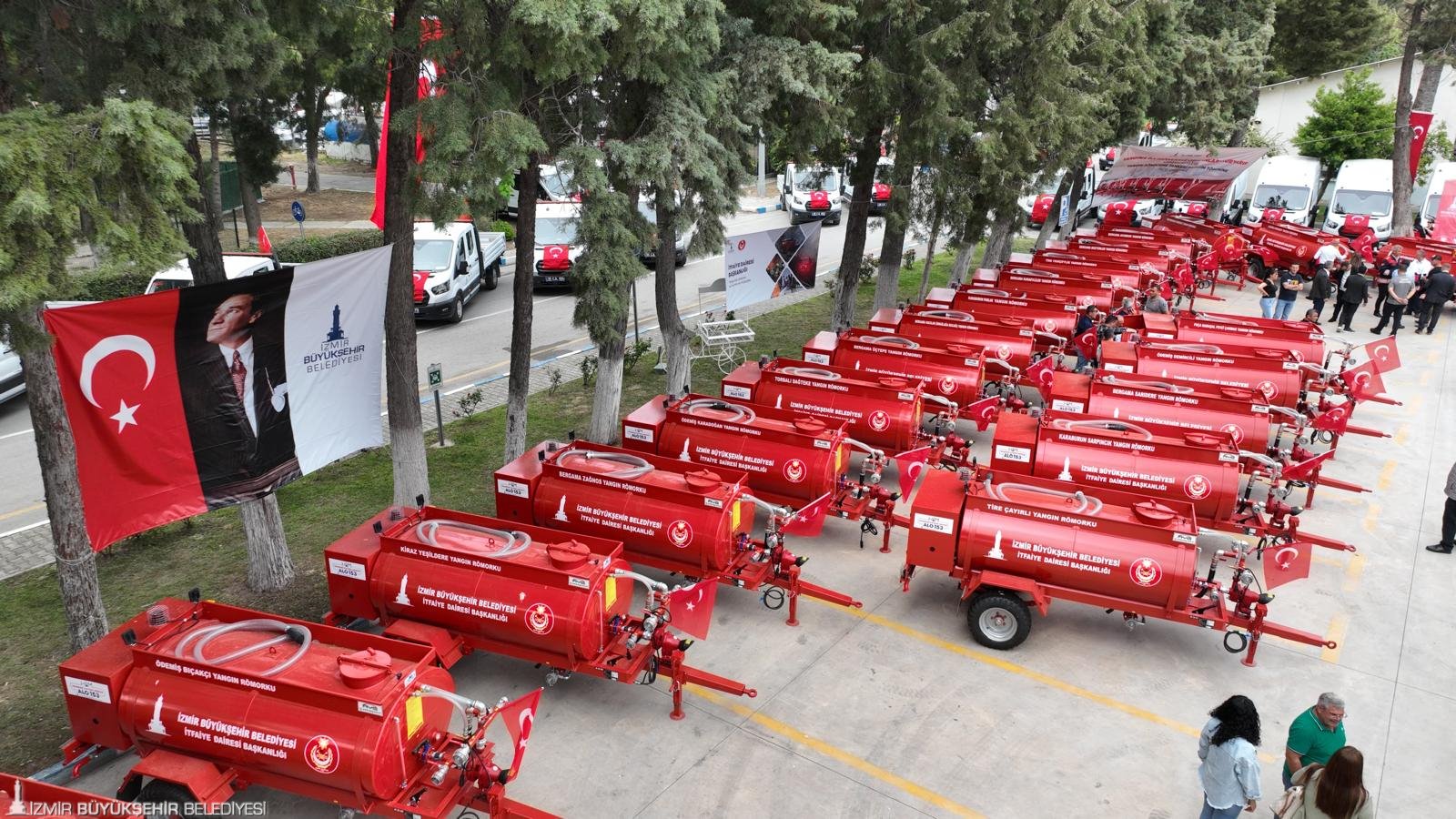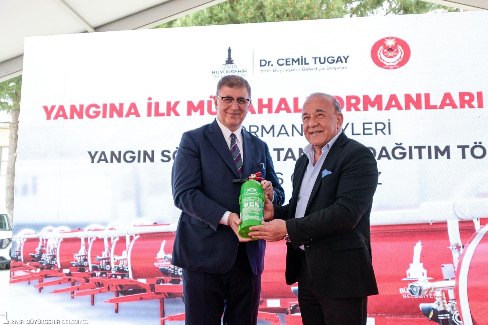 İzmir Büyükşehir Belediyesi afetlere ve yangınlara dirençli İzmir için çalışmalarını sürdürüyor. Kent genelinde yangınla mücadele kapasitesini güçlendirmek, günlük hizmetleri etkin ve hızlı bir şekilde sürdürmek amacıyla 134 milyon liralık yatırımla 184 araç alındı. Olası yangınlarda alevlerin büyümeden söndürülmesini sağlamak için başlatılan seferberlik kapsamında orman köyleri için alınan 125 yangın tankerinin 40'ı, İzmir Büyükşehir Belediye Başkanı Dr. Cemil Tugay’ın ev sahipliğinde düzenlenen törenle dağıtıldı. Törende belediyeye kazandırılan 59 hizmet aracı da tanıtıldı. İzmir Büyükşehir Belediyesi Makine İkmal, Bakım ve Onarım Dairesi Başkanlığı’nda düzenlenen törene Gaziemir Belediye Başkanı Ünal Işık, Kemalpaşa Belediye Başkanı Mehmet Türkmen, Beydağ Belediye Başkanı Şakir Başaran ile itfaiye personeli, muhtarlar ve yurttaşlar katıldı.