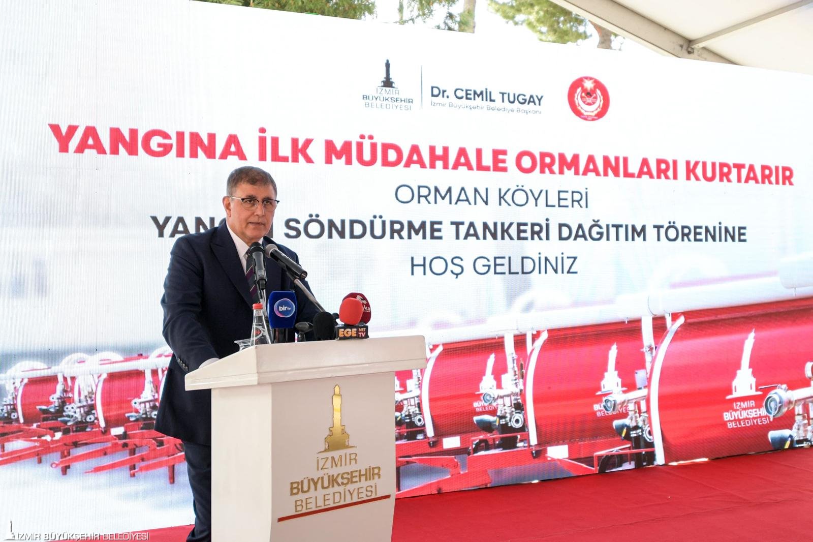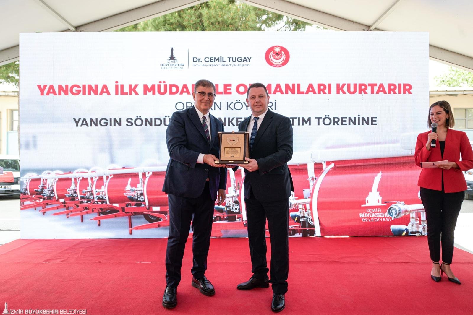 Törende konuşan İzmir Büyükşehir Belediye Başkanı Dr. Cemil Tugay köylere dağıtılan yangın tankerlerinin büyük öneme sahip olduğunu söyledi. İzmir'deki 600 köyün yüzde 90'ından fazlasına tanker dağıtıldığını aktaran Başkan Tugay, “Biz bunu önemsedik. Çünkü hem şehrin yaşadığı deneyimler hem de geçen yıl hepimizin yaşadığı yangın deneyimleri bize gösterdi ki köylerde etkili ve hızlı müdahale için tanker bulundurmak kritik öneme sahip. Bu konuda duyarlı tüm yurttaşlarımıza teşekkür ediyorum. Özellikle muhtarlarımıza teşekkür ediyorum. Bu tankerlere en fazla sahip çıkan ve görev yapan insanlar onlar” dedi.
