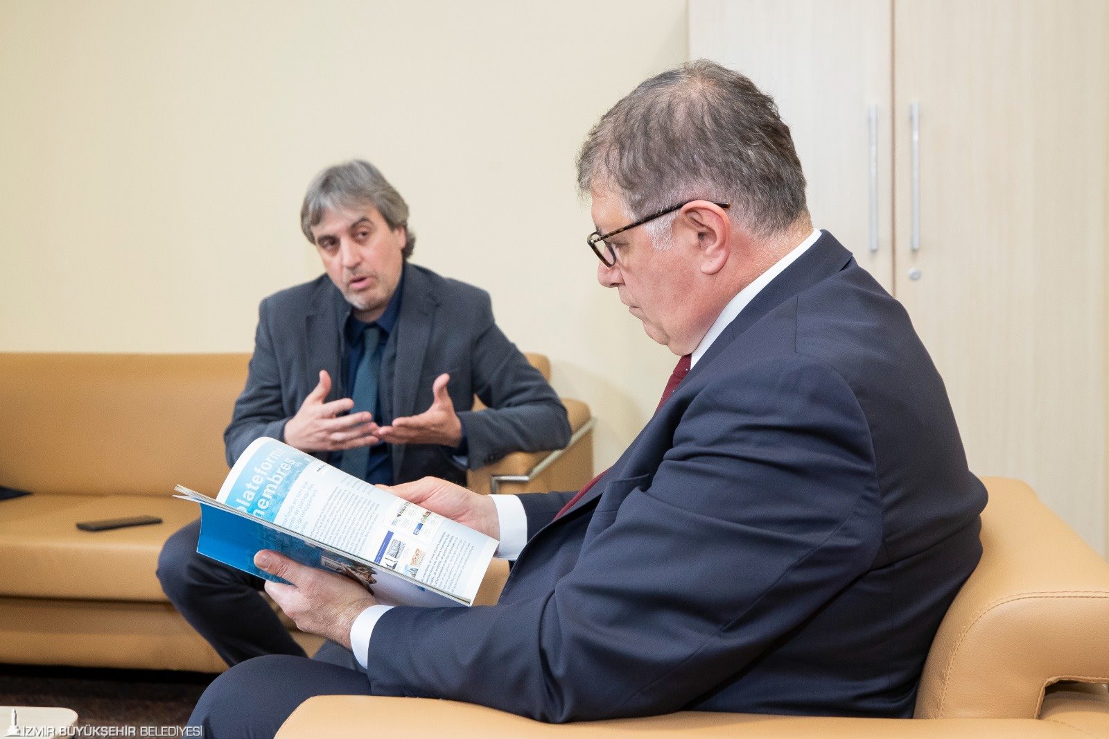 Akdeniz Kentler Ağı (MedCities) Genel Sekreteri Joseph Canals, İzmir Büyükşehir Belediye Başkanı Dr. Cemil Tugay’ı makamında ziyaret etti. Karşılıklı iş birlikleri ve projelerin görüşüldüğü toplantıda konuşan Başkan Dr. Cemil Tugay, katı atık yönetimi konusunda birlikte çalışabileceklerini ve özellikle İzmir Körfezi’nin temizliği için bir zirve gerçekleştirebileceklerini belirtti. Tugay ayrıca devam eden projeler hakkında da bilgi verdi.