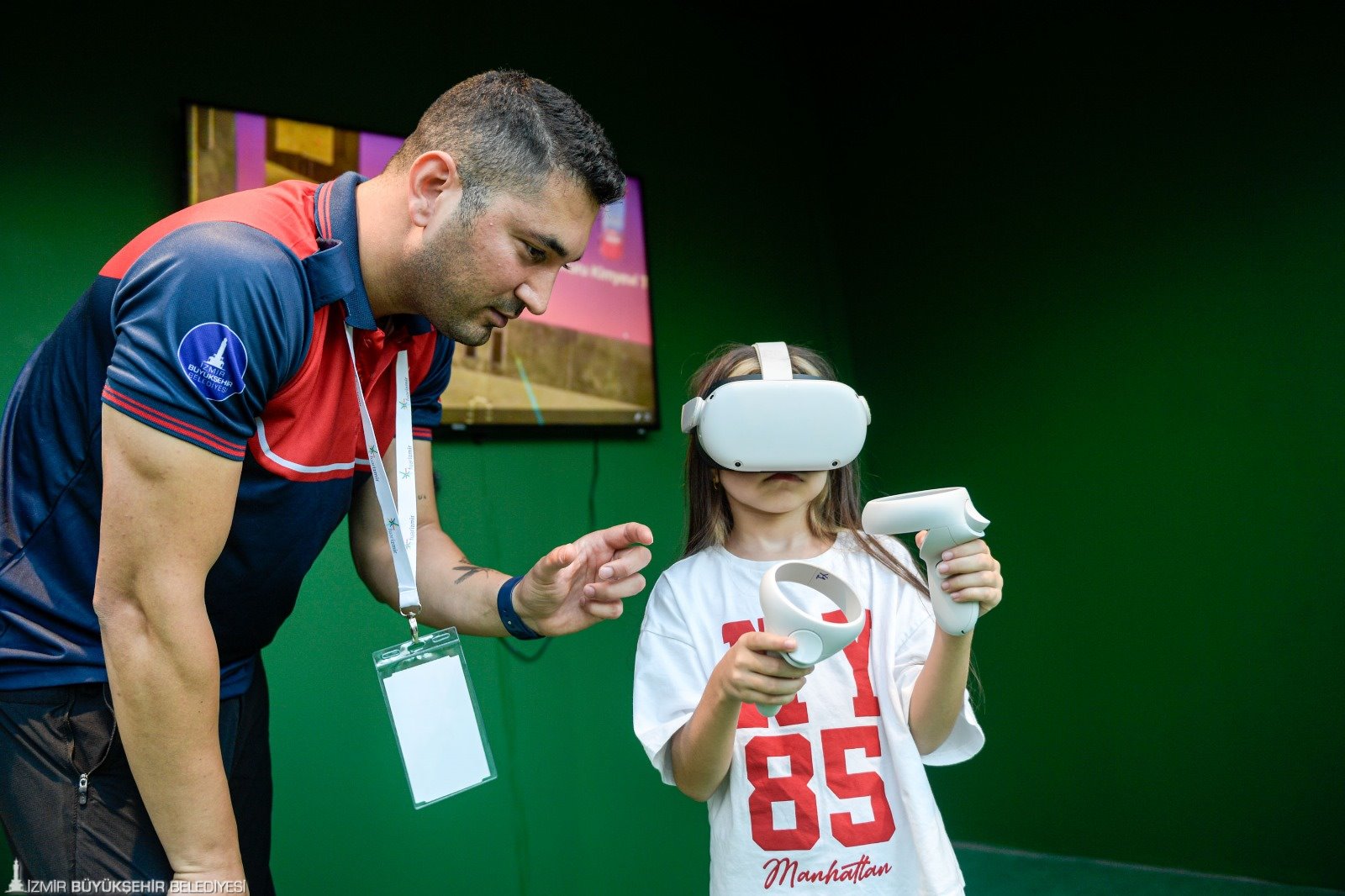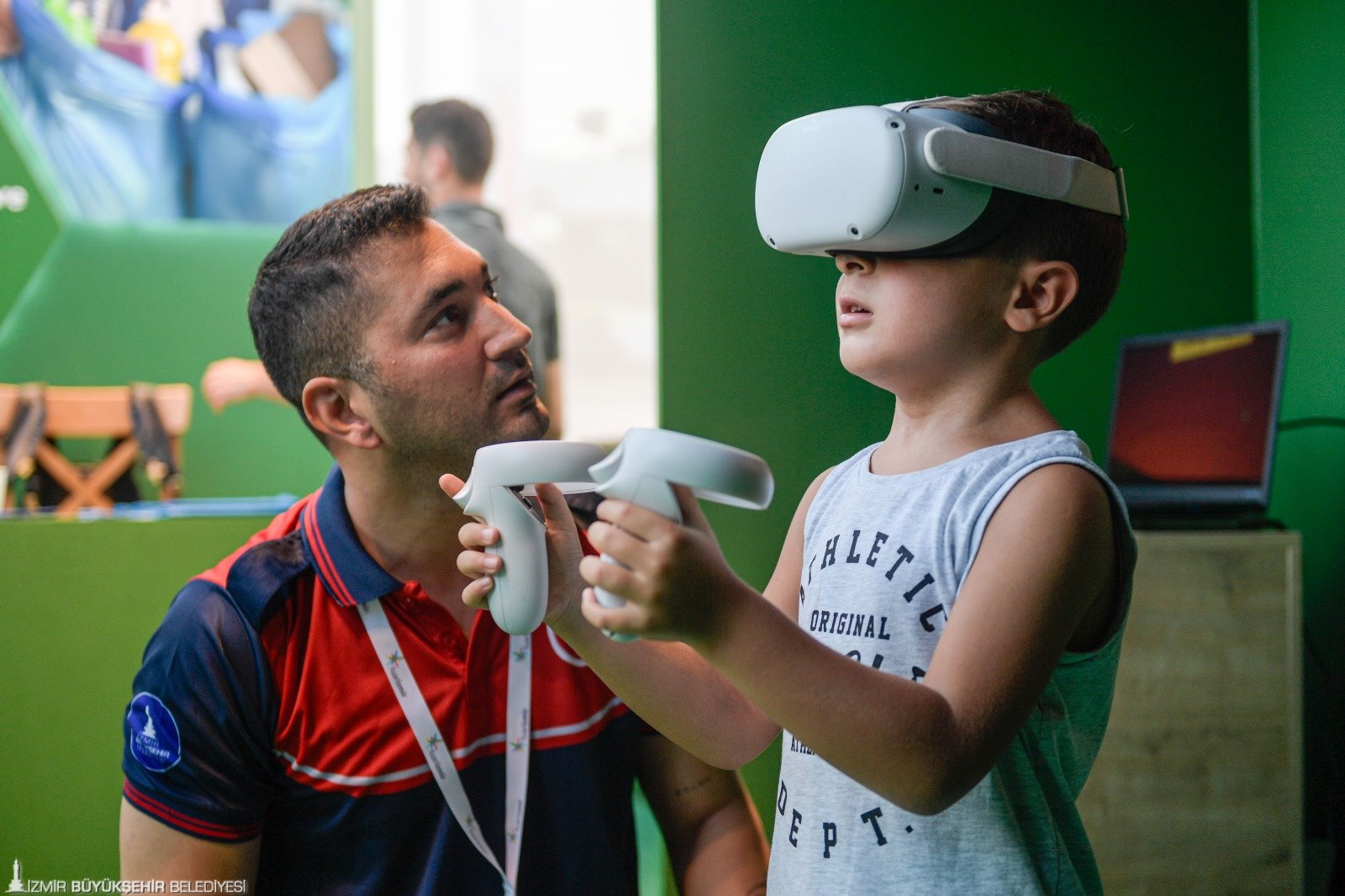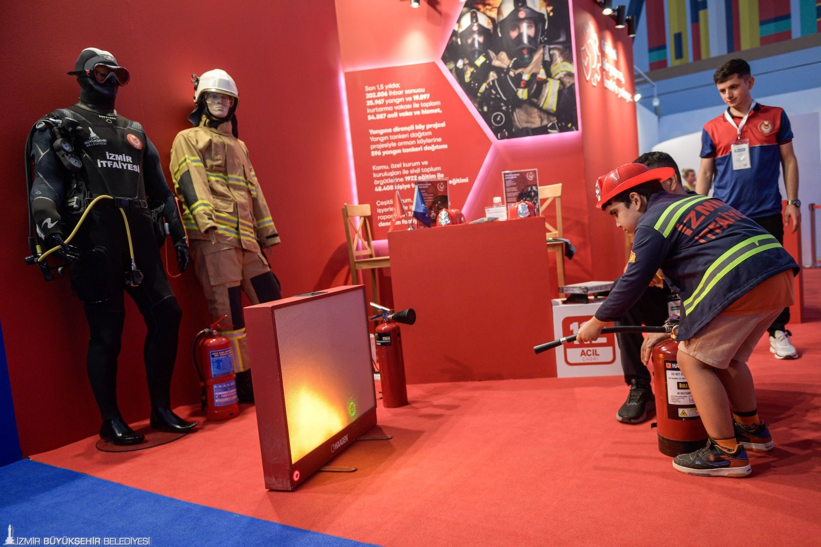 İzmir Büyükşehir Belediyesi İtfaiye Dairesi Başkanlığı, 94. İzmir Enternasyonal Fuarı’ndaki (İEF) standında yurttaşları yangınlara karşı bilinçlendiriyor. Sanal gerçeklik tabanlı yangın söndürme eğitim simülasyonunu deneyimleyenler gerçeğe yakın senaryolar karşısında büyük bir heyecanla yangına müdahale ediyor.