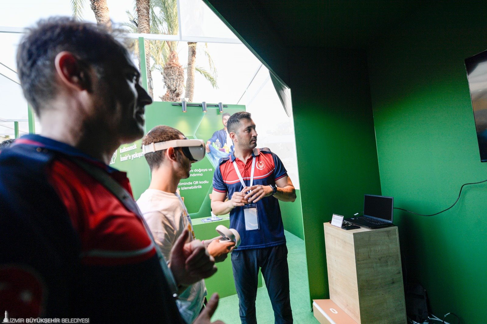 İzmir Büyükşehir Belediyesi İtfaiye Daire Başkanlığı, 94. İzmir Enternasyonal Fuarı kapsamında kurulan belediye sokağında, teknolojik ürünleri ve farkındalık oluşturan eğitimleri ile yer aldı. Sanal gerçeklik tabanlı yangın söndürme simülasyonu, katılımcılara, yangına gerçeğe yakın müdahale deneyimi sunuyor. Simülasyon, ofis, mutfak ve elektrik panosu gibi üç farklı ortamda yangın senaryoları sunarak, katılımcılara çeşitli risklerle mücadele etme olanağı da tanıyor. VR sanal gözlükleri ile tam entegre olan sistem, 360 derece görüş açısı sunarak katılımcının gerçekçi bir ortamda pratik yapmasını sağlıyor.