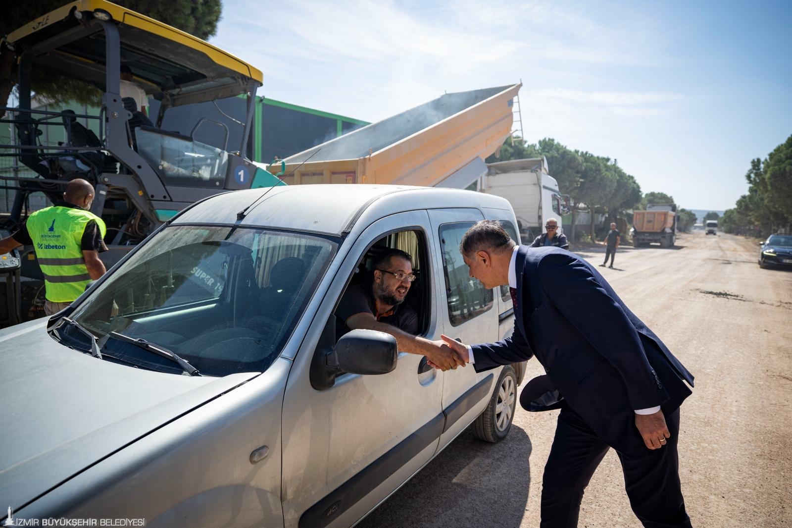 İzmir Büyükşehir Belediyesi, kentin ulaşım konforunu artırmak için dört bir yanda asfalt çalışmalarına devam ediyor. İzmir Büyükşehir Belediyesi Fen İşleri Dairesi Başkanlığı koordinesinde çalışmalarını planlayan İZBETON ekipleri, bölge halkının ve sanayi bölgesinin yoğun talepte bulunduğu Aliağa Helvacı Mahallesi Sanayi Bölgesi Caddesi’nde asfalt serimi çalışmalarına başladı. İzmir Büyükşehir Belediye Başkanı Dr. Cemil Tugay da çalışmaları yerinde inceledi. İzmir Büyükşehir Belediyesi Genel Sekreter Yardımcısı Çağatay Güç’ten bilgi alan Başkan Tugay, vatandaştan gelen talepleri de dinledi.