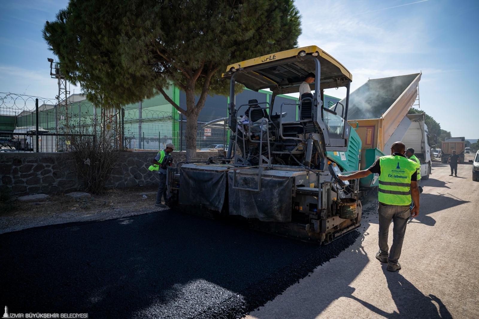 Alanda zemin düzeltmelerini tamamlayan İZBETON ekipleri iki kilometrelik uzunluğa denk gelecek 6 bin ton sıcak asfaltın serimini gerçekleştirecek. Yenilenen haliyle sanayi yolu daha konforlu ve güvenli bir hale kavuşturulacak.