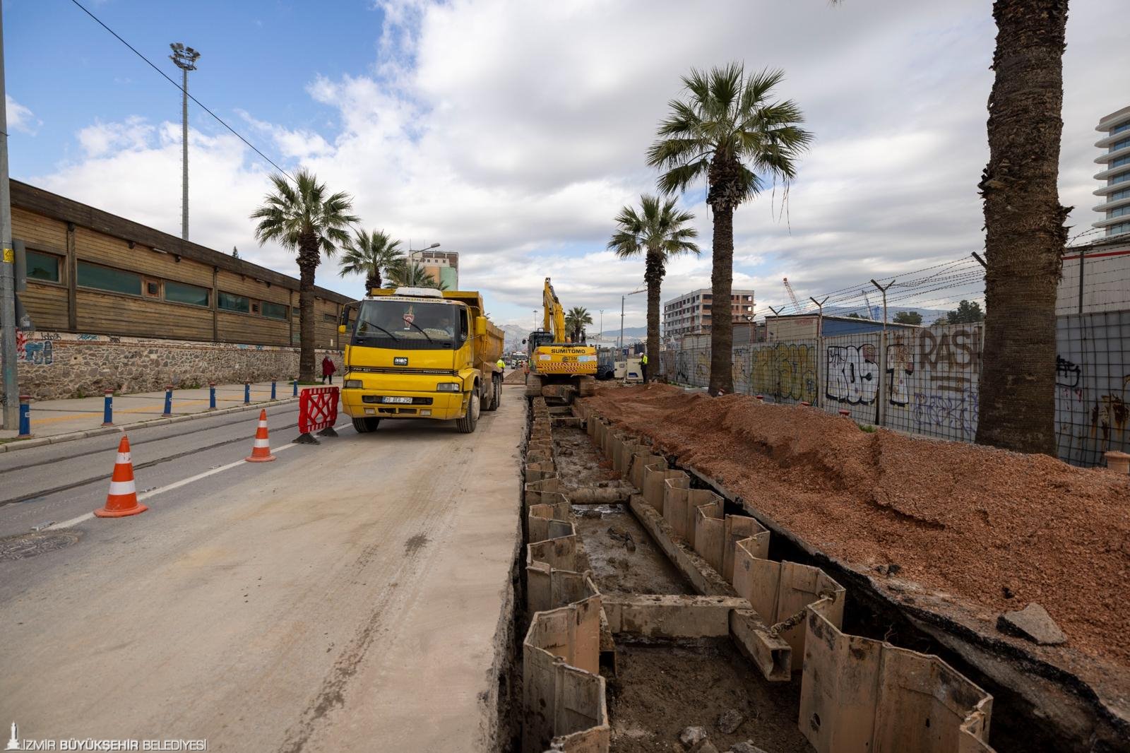 İzmir Büyükşehir Belediyesi İZSU Genel Müdürlüğü’nün, kentin altyapısını uzun yıllar boyunca güvenli ve sürdürülebilir bir şekilde yenilemeyi hedefleyen büyük ölçekli yatırımları devam ediyor. Konak, Bayraklı ve Karabağlar ilçelerinde toplam 3 milyar liralık altyapı yatırımı ile İzmir’in altyapısında tarihi bir dönüşüm başlatıldı. Dünya Bankası finansmanı ile yürütülen Türkiye Deprem, Sel ve Yangın Acil İmar Projesi (TEFWER) kapsamında hayata geçirilen yatırımlar ile kent merkezinde birleşik sistem kademeli olarak ayrıştırılıyor. Dev projelerin Alsancak-Konak etabı kapsamında Alsancak Liman bölgesinde çalışmalar Şehitler Caddesi’nde devam ediyor.
