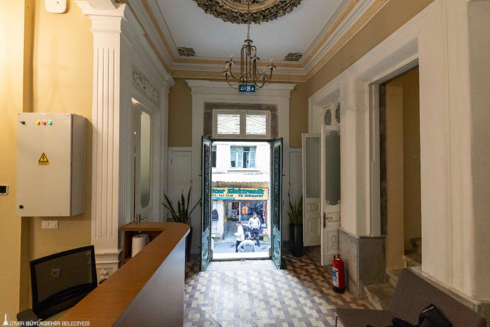 Bina Basmane bölgesinde, Hatuniye Meydanı’nı Oteller Sokağı’na bağlayan, Dönertaş Sebili’nin de üzerinde bulunduğu 945. Sokak üzerinde yer alıyor. Tahmini 19. yüzyıl sonlarında inşa edilmiş bir konut olarak biliniyor. Mülkiyeti Tarihi Kemeraltı İnşaat Yatırım Ticaret AŞ’ye (TARKEM) ait yapının restorasyon çalışmalarını yürüten İzmir Büyükşehir Belediyesi Yapı İşleri Dairesi Başkanlığı, yakın zamana kadar otel olarak kullanılan yapının tarihi dokusunu gün yüzüne çıkardı. 390 metrekare inşaat alanı, 70 metrekare bahçe alanı olmak üzere toplam 460 metrekarelik alana sahip tarihi konak, bodrum katı ile beraber 3 kattan oluşuyor. Binanın özgün ahşap doğramaları ve ahşap zeminleri korunarak bakım ve onarım yapıldı. Çeşitli göbek süslemeleri, tavandaki küçük detaylar korunarak boyandı, tekrar özgün formuna kavuşturuldu. Bina teslim aldığında doğramalarında, duvarlarında ve detaylarında bulunan boyalar incelikle temizlendi, özgün formuna geri kazandırıldı.