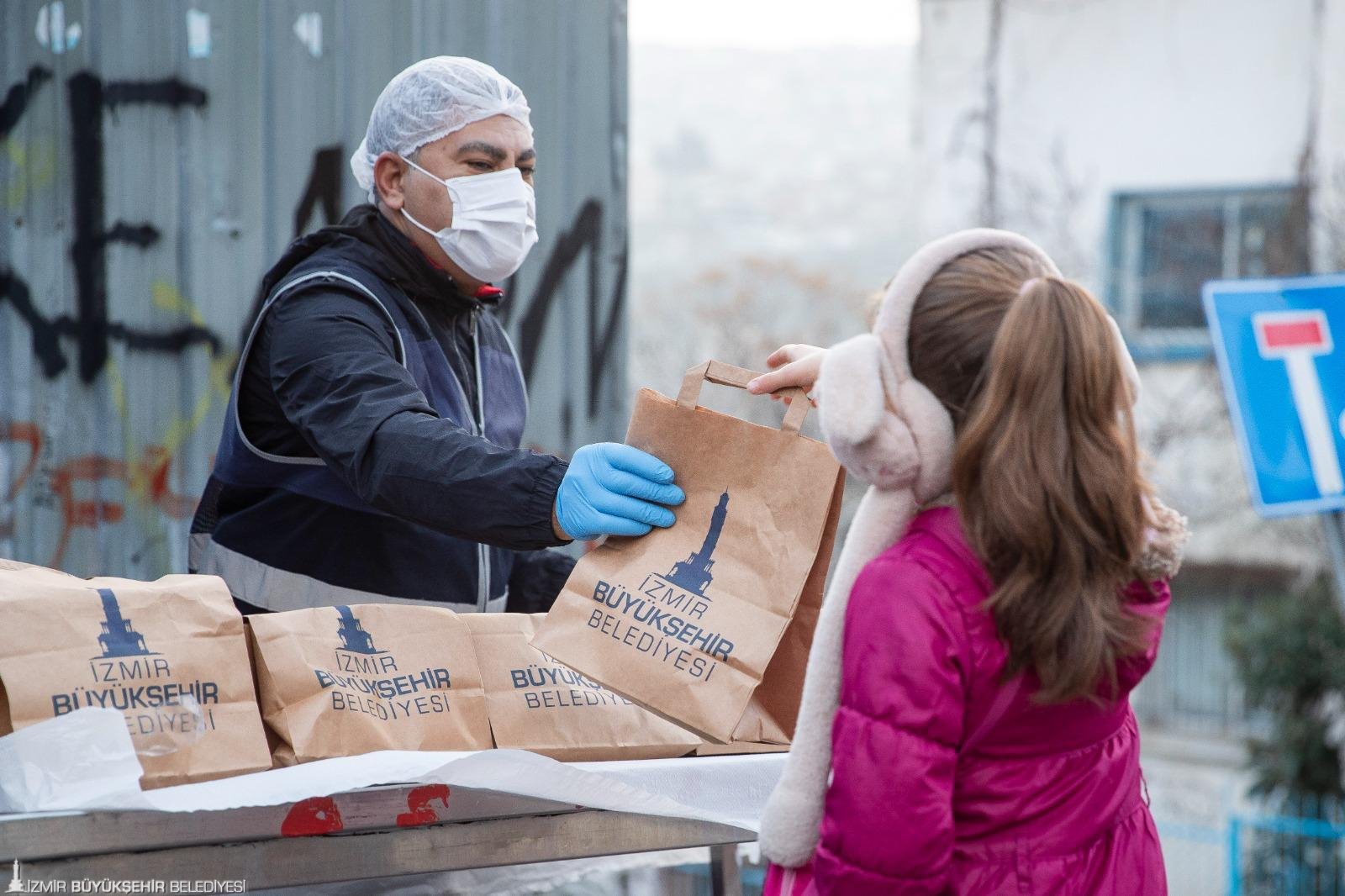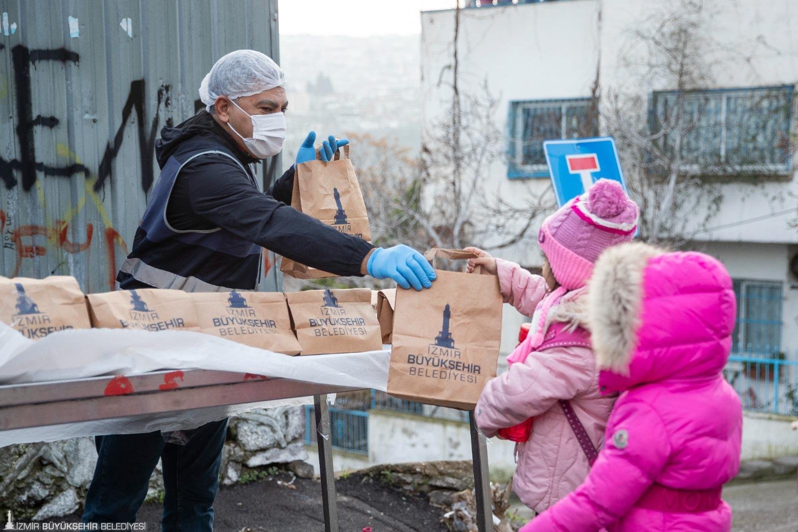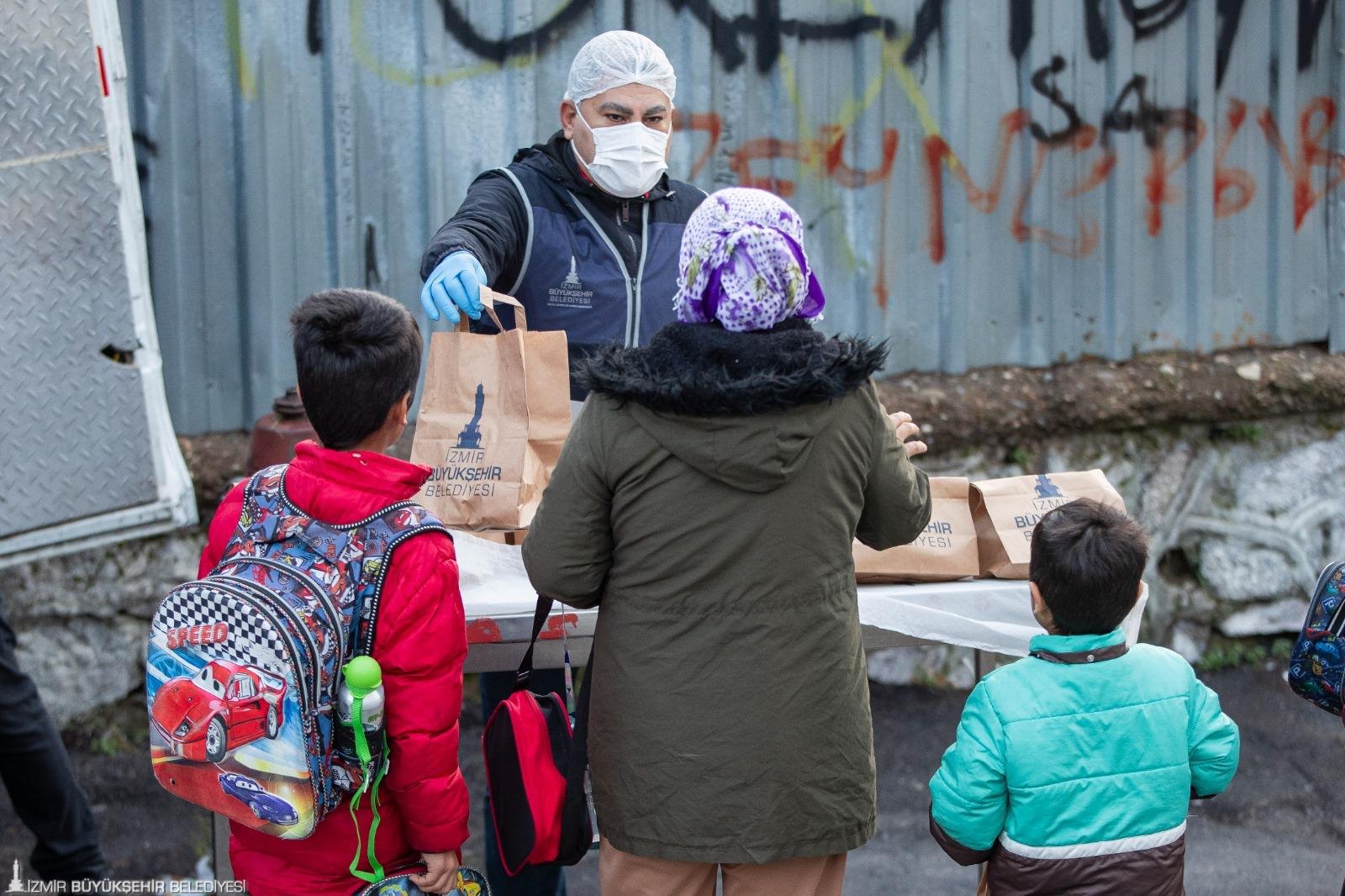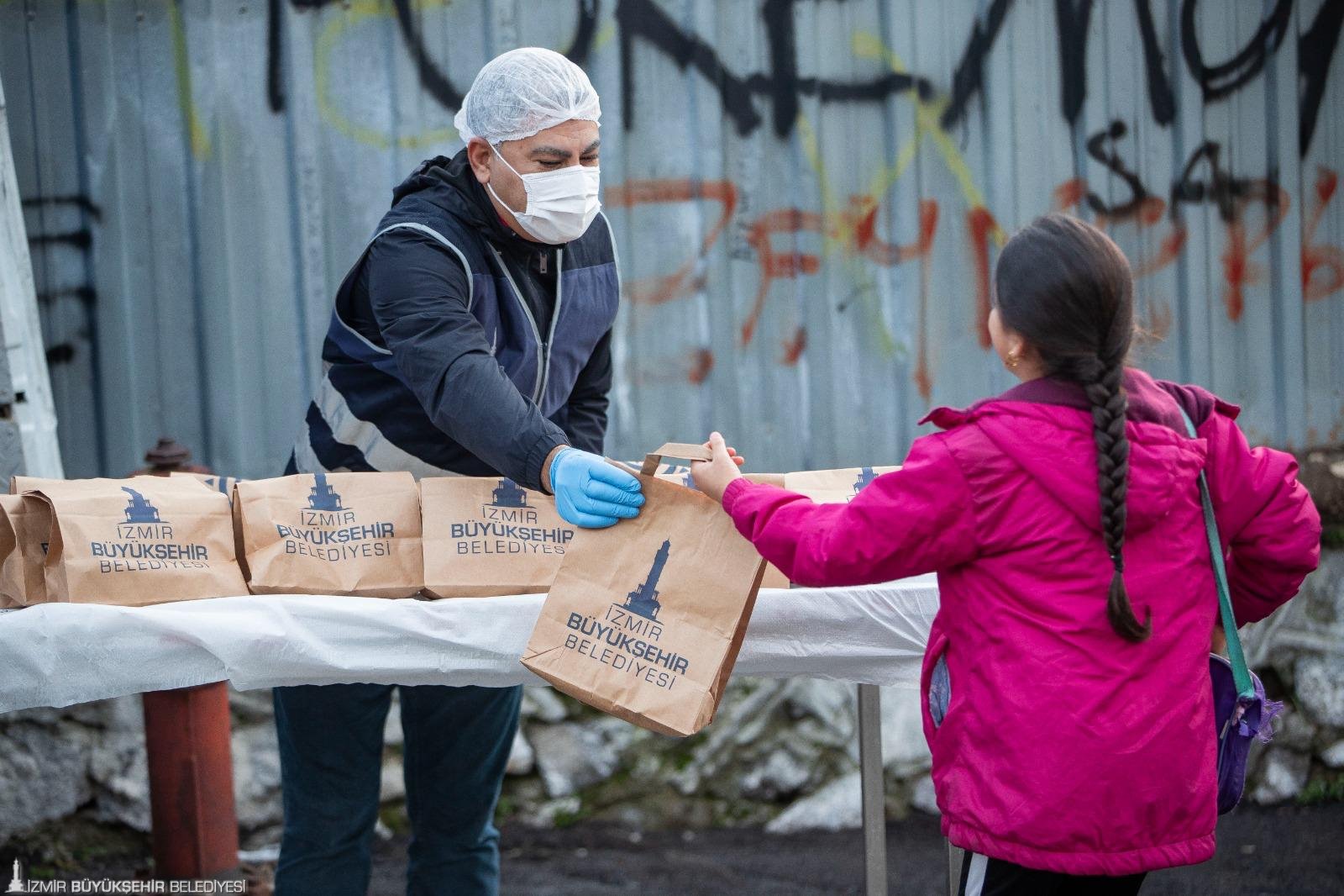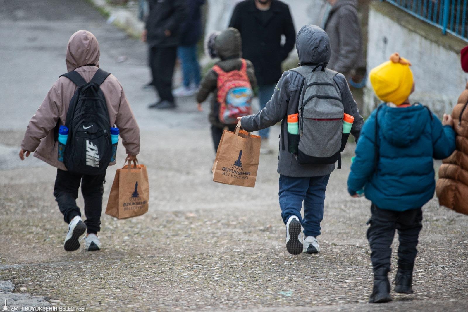 İzmir Büyükşehir Belediyesi’nin sosyal belediyecilik anlayışı doğrultusunda hayata geçirilen çalışmalara bir yenisi daha eklendi. Kentteki ihtiyaç sahibi ailelerin yanında olan Büyükşehir Belediyesi bu kez ilkokul öğrencilerine beslenme paketi dağıtmaya başladı. İhtiyaç olduğu tespit edilen okullarda öğrenciler hizmetten yararlanıyor.