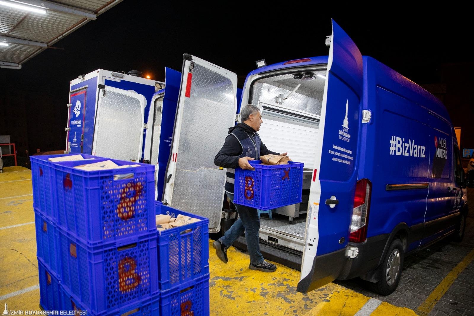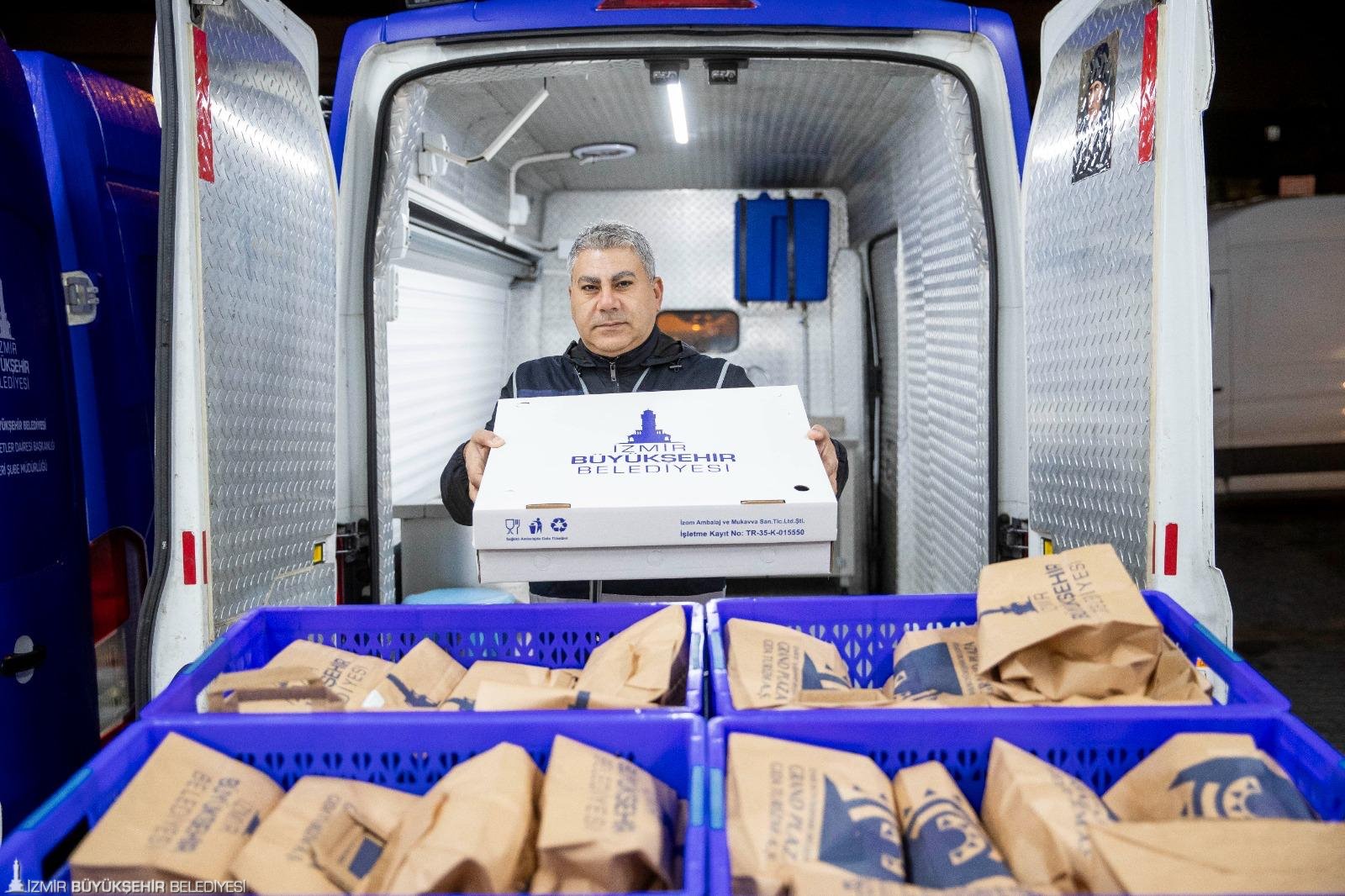 Buca Sosyal Yaşam Kampüsü Yerleşkesi’nde haftanın yedi günü aralıksız olarak yemek, kumanya, kahvaltılık üretim hizmeti veren İzmir Büyükşehir Belediyesi Sosyal Hizmetler Dairesi Başkanlığı bünyesindeki Aşevleri Şube Müdürlüğü, günlük ortalama 15 bin kişilik sıcak yemek, 2 bin 500 kişilik kumanyayı ihtiyaçlı kesime dağıtıyor. Ayrıca günlük 5 bine yakın taziye pidesi üretiliyor.