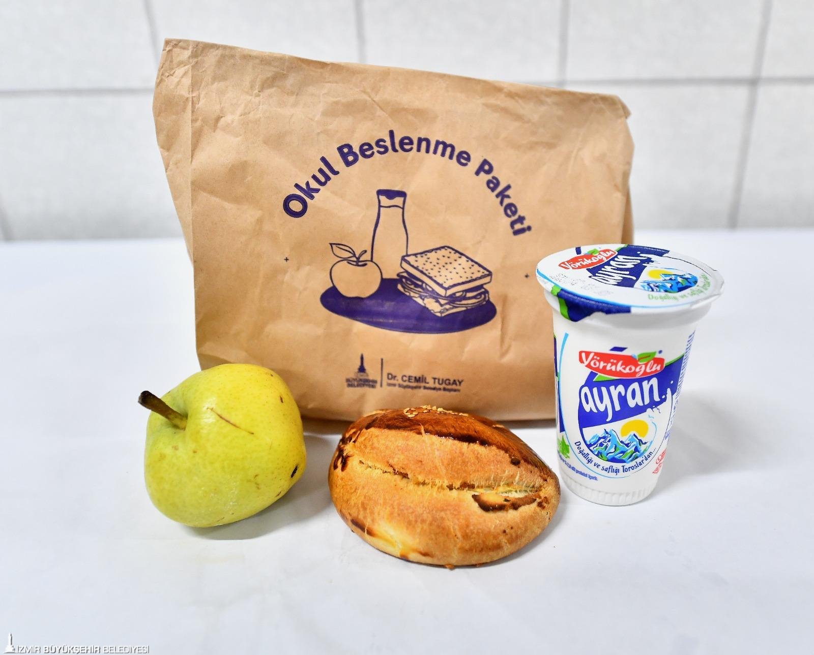 Okullarda 08.30-09.00 saatleri arasında dağıtılan beslenme paketlerinin içerikleri, İzmir Çocuk Meclisi üyelerinin tavsiyeleri ve uzman akademisyenlerin de bulunduğu kurulun önerileriyle oluşturuldu. Mevsimine uygun sebzelerle yapılmış besinlerin de yer aldığı beslenme paketi içerisinde mutlaka mevsim meyvesi ile ayran, süt gibi sağlıklı bir içecek bulunuyor. Ayrıca özel gereksinimi olan öğrencilerin eğitim aldığı 30 okula da günlük ortalama 2 bin 500 kişilik sıcak yemek hizmeti veriliyor.