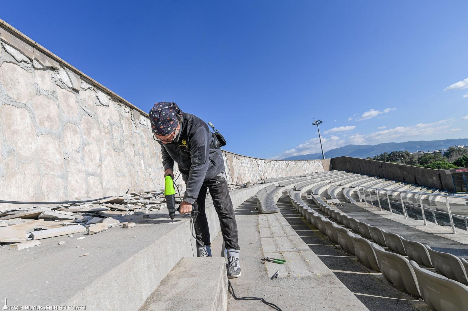 Yapı İşleri Şube Müdürlüğü Kalite Kontrol Mühendisi Tolga Kanpolat, Aşık Veysel Rekreasyon Alanı’nın yaklaşık 15 yıldır İzmirli hemşehriler için önemli bir mekan olduğunu belirterek, “Başkan Cemil Tugay’ın vizyonu doğrultusunda kültür ve sanatın sürekliliğini sağlamak için yenileme çalışması başlattık. Önceden ahşap oturma alanları vardı ve sırt dayamaları eksikti. Seyircilerin konforu için sırt dayamalı tribün koltuklarına geçiş yaptık. Toplam 5 bin 250 koltuğun yenileme işlemini tamamlıyoruz” dedi.