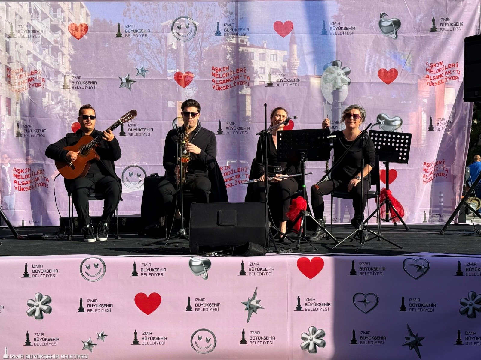 İzmir Büyükşehir Belediyesi, 14 Şubat Sevgililer Günü kapsamında Alsancak’ta “Aşkın Melodileri” etkinliği düzenledi. Kıbrıs Şehitleri Caddesi önünde yapılan etkinlik, Atıl Aktagel’in solo konseriyle başladı, Hazal İlhan’ın saksafon dinletisiyle devam etti. Hikem Çamdalı ve Atıl Aktagel ile Şenol Şentürk ve İbrahim Telkıvıran duo performansı ile müzikseverlerle buluştu. Günün ilerleyen saatlerinde Bando Quartet konseriyle tempo yükseldi. Program, 17.30’da Enes Kunduracı konseri ve 18.30’da DJ Heyecan performansıyla tamamlandı. Gün boyunca Alsancak’ta hava şartlarının da elverişli olması etkinliğe ayrı bir renk kattı. Etkinliğe katılan çiftler müzik eşliğinde dans ederken, birçok vatandaş sevilen şarkılara hep bir ağızdan eşlik etti. İzmir’in kalbinde yapılan dinleti, özel bir Sevgililer Günü etkinliği olarak hafızalarda yerini aldı.