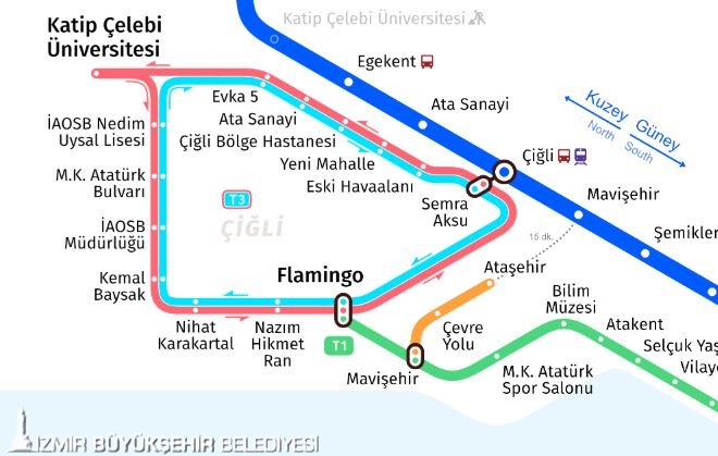 İzmir Büyükşehir Belediyesi, ulaşım ağında yurttaşlardan gelen istek ve öneriler doğrultusunda düzenlemeler yapmayı sürdürüyor. Bu kapsamda Karşıyaka ve Çiğli tramvay hatlarında, iki ayrı istasyonun “Ataşehir” adını taşıması nedeniyle yaşanan karışıklığın önüne geçilmesi amacıyla bir isim değişikliğine gidildi. Alınan kararla, Karşıyaka–Çiğli tramvay hatlarının aktarma durağı olan Ataşehir Kavşağı İstasyonu’nun adı Flamingo olarak güncellendi. İsim değişikliğinden yurttaşların memnuniyet duyduğu belirtilirken, düzenleme sayesinde hem Alaybey yönüne hem de Çiğli istikametine seyahat eden yolcuların yaşadığı karışıklığın sona erdiği ifade edildi.