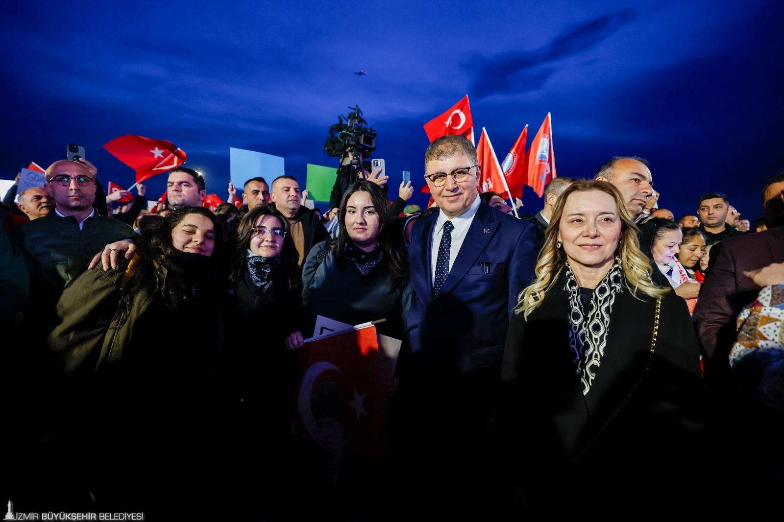 Alana İzmirlilerle birlikte yürüyerek giren Başkan Tugay, konuşmasının ardından yurttaşlarla sohbet etti ve gençlerin yürüyüşüne katıldı.