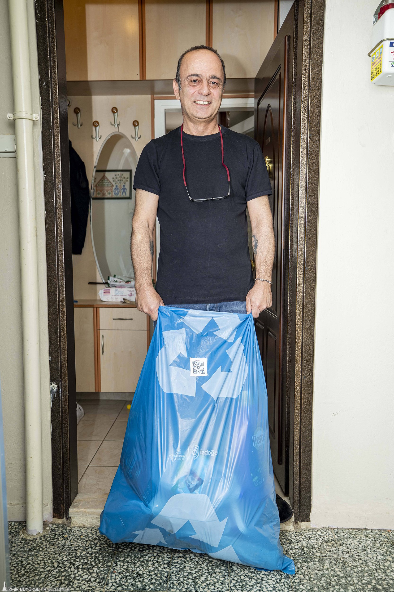 Görevli personelin haftalık olarak hanelerden topladığı atık poşetlerinin üzerinde bir QR kod yer alıyor. Proje boyunca İzmir Büyükşehir Belediyesi iştiraklerinden İzmir İnovasyon ve Teknoloji AŞ tarafından geliştirilen uygulama sayesinde oluşturulan veri tabanında hanelerin bilgileri kayıt altına alınıyor. Böylece toplama yapılan haneler ve atık poşetleri eşleştiriliyor. Toplanan poşetlerde yer alan ambalaj atıkları İzDönüşüm Fabrikası’nda türüne göre ayrıştırılarak ekonomiye kazandırılıyor. Atık poşetlerine yalnızca ambalaj atıklarının atılması gerekiyor. Belediye tarafından dağıtılan poşetlere organik atık atanlar cezai yaptırıma tabi tutuluyor.