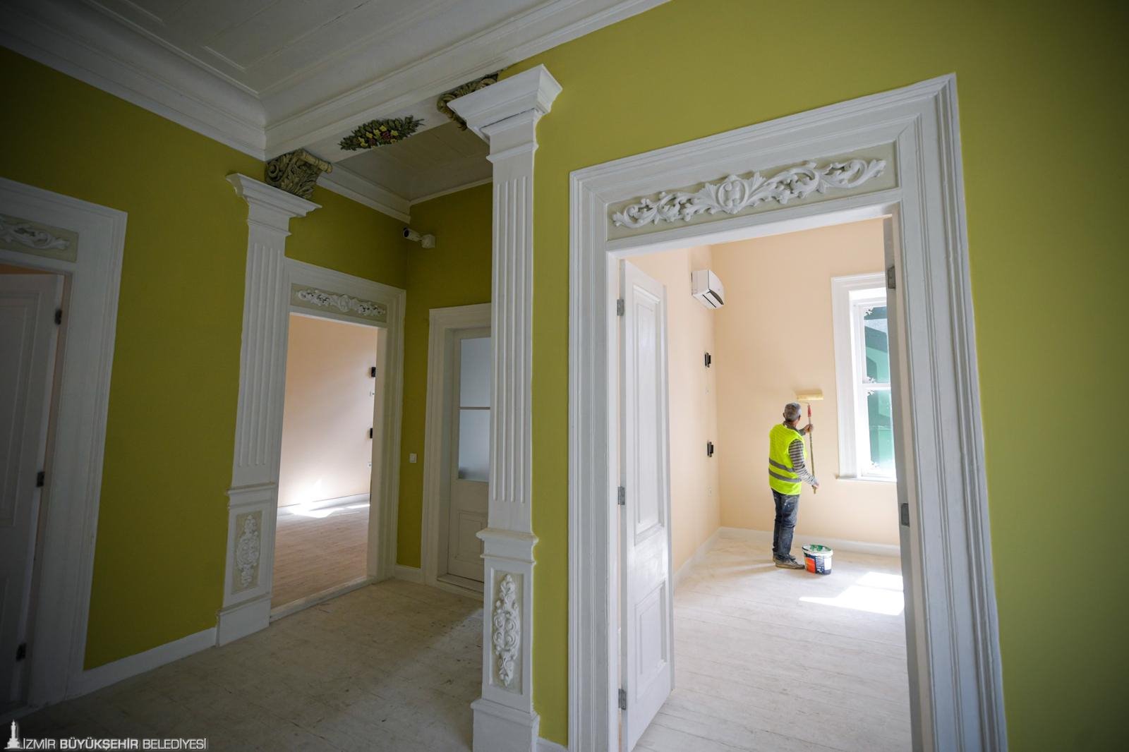 Tarihi yapıyla özdeşleşen işlemelerin titizlikle restore edildiğine vurgu yapan Dilara Yöndem Kayan, “Binanın özgün ahşap doğramalarını ve ahşap zeminlerini koruyarak bakım ve onarımını yaptık. Çeşitli göbek süslemeleri, tavandaki küçük detaylar korunarak boyandı, tekrar özgün formuna kavuşturuldu. Binayı teslim aldığımda doğramalarında, duvarlarında ve detaylarında kat kat boyalar vardı. İncelikle temizleyerek özgün formuna geri getirdik” dedi.
