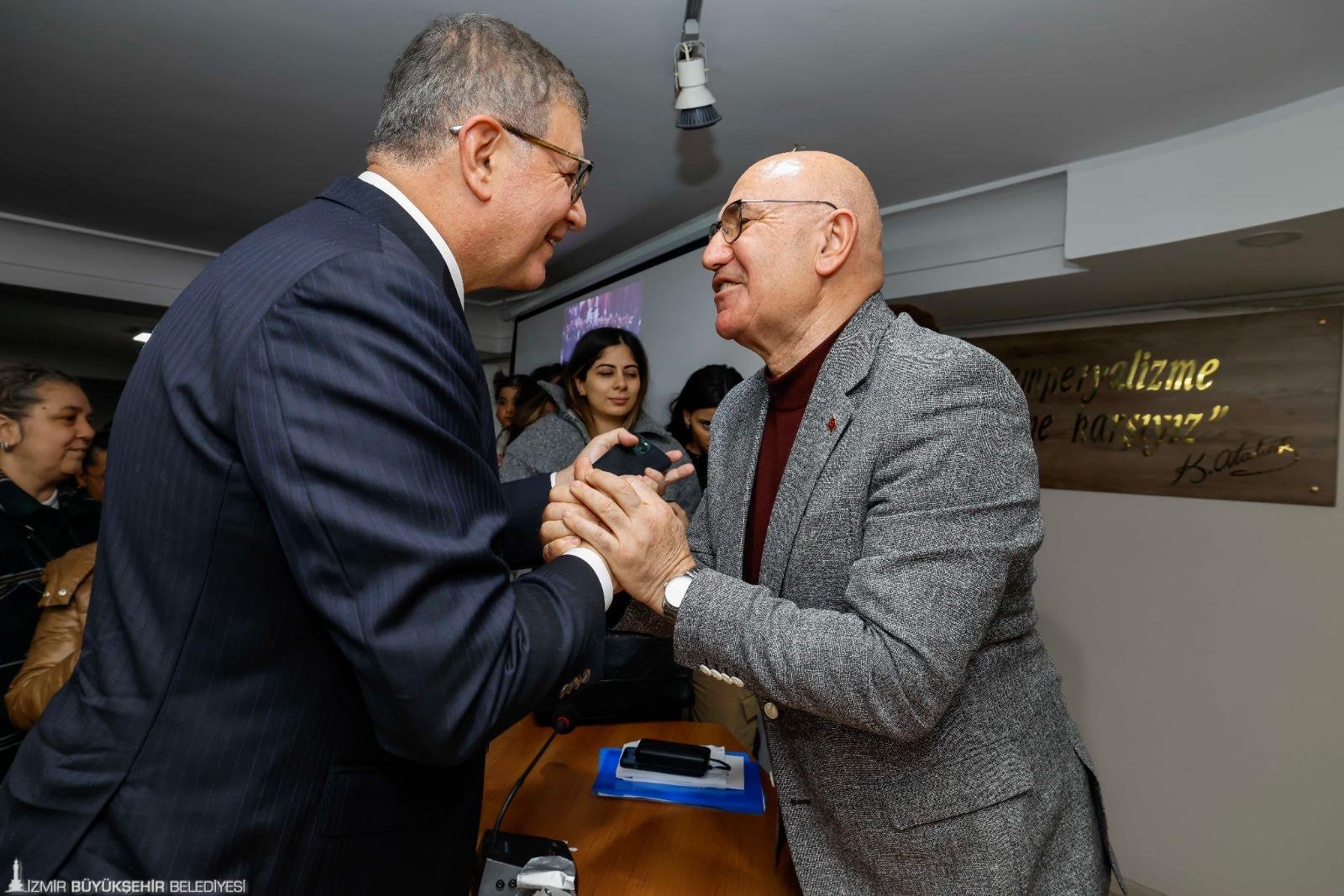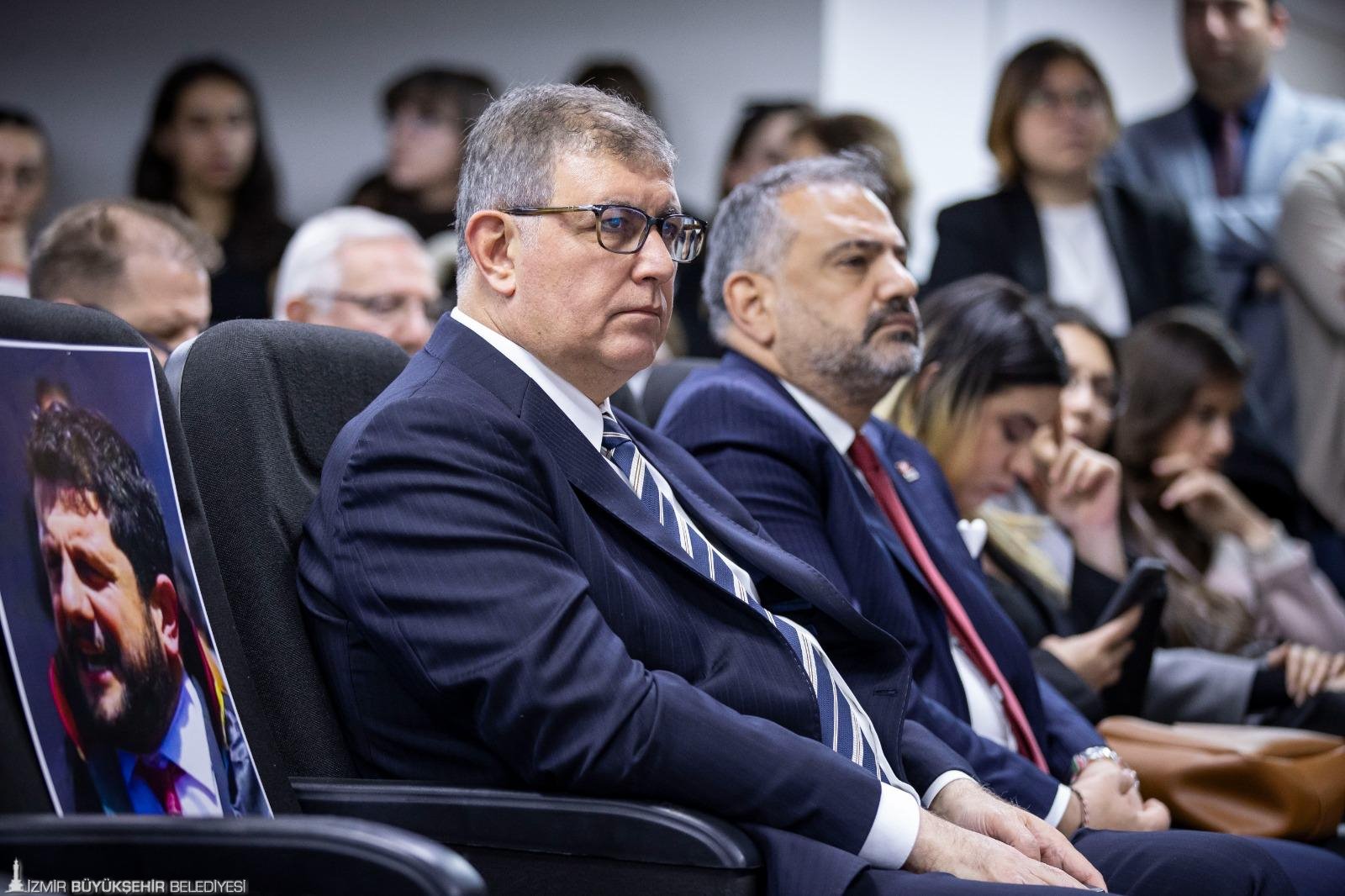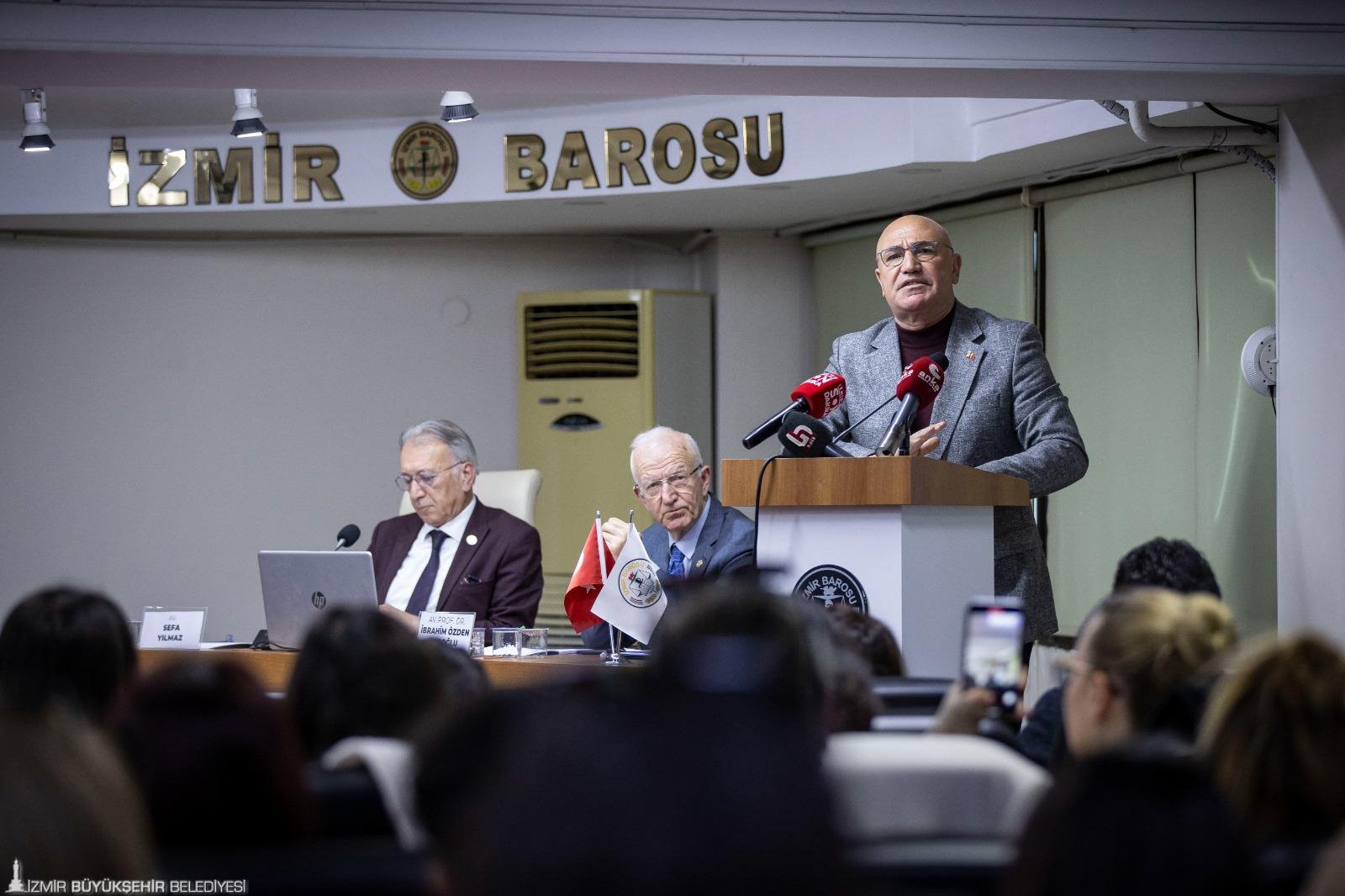 İzmir Büyükşehir Belediye Başkanı Dr. Cemil Tugay, İzmir Barosu tarafından düzenlenen “Faşizmin Hedefinde; Barolar ve Avukatlar” adlı panele katıldı. İlk önce İzmir Barosu Başkanı Sefa Yılmaz’ı makamında ziyaret eden Başkan Dr. Cemil Tugay, daha sonra Avukat Nevzat Erdemir Konferans Salonu’ndaki programa geçti. Cumhuriyet Halk Partisi (CHP) İzmir İl Başkanı Şenol Aslanoğlu, avukatlar, yerel yönetim temsilcileri ve vatandaşların yer aldığı panele İstanbul Barosu Başkanı avukat Prof. Dr. İbrahim Özden Kaboğlu, İzmir Barosu Başkanı avukat Sefa Yılmaz, Türkiye Barolar Birliği Başkan Yardımcısı Bahar Gültekin Candemir, CHP Şanlıurfa Milletvekili Avukat Mahmut Tanal konuşmacı olarak katıldı.