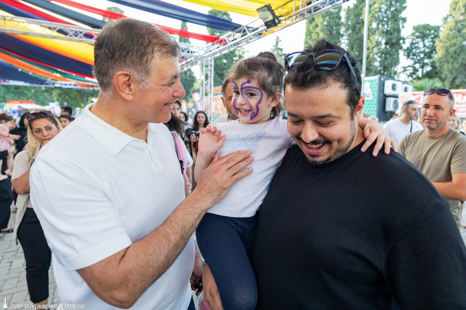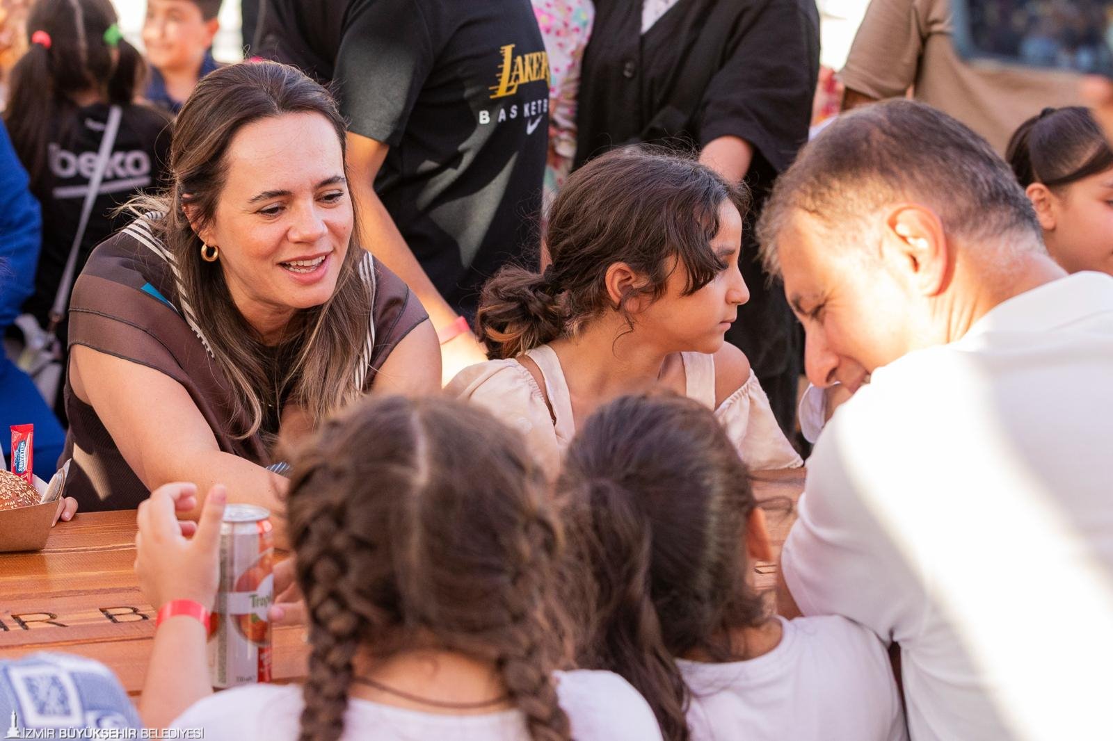 İzmir Büyükşehir Belediyesi, 94. İzmir Enternasyonal Fuarı’nın (İEF) üçüncü gününde İzmirli minikleri ağırladı. İzmir Büyükşehir Belediyesi Sosyal Hizmetler Dairesi Başkanlığı’nın Buca Göksu, Konak Ballıkuyu ve 1. Kadriye mahallelerinde bulunan Dayanışma Noktaları’ndan hizmet alan 27 anne ve farklı yaş gruplarından 50 çocuk fuar alanında İzmir Büyükşehir Belediye Başkanı Dr. Cemil Tugay ve eşi Öznur Tugay ile buluştu. Kültürpark’taki yeme içme alanında düzenlenen buluşmada Başkan Dr. Cemil Tugay’a İzmir Büyükşehir Belediyesi Genel Sekreter Yardımcısı Prof. Dr. Pınar Okyay ve Sosyal Hizmetler Dairesi Başkanı Ela Hızlı eşlik etti.