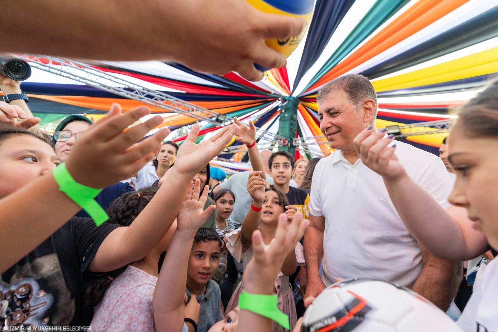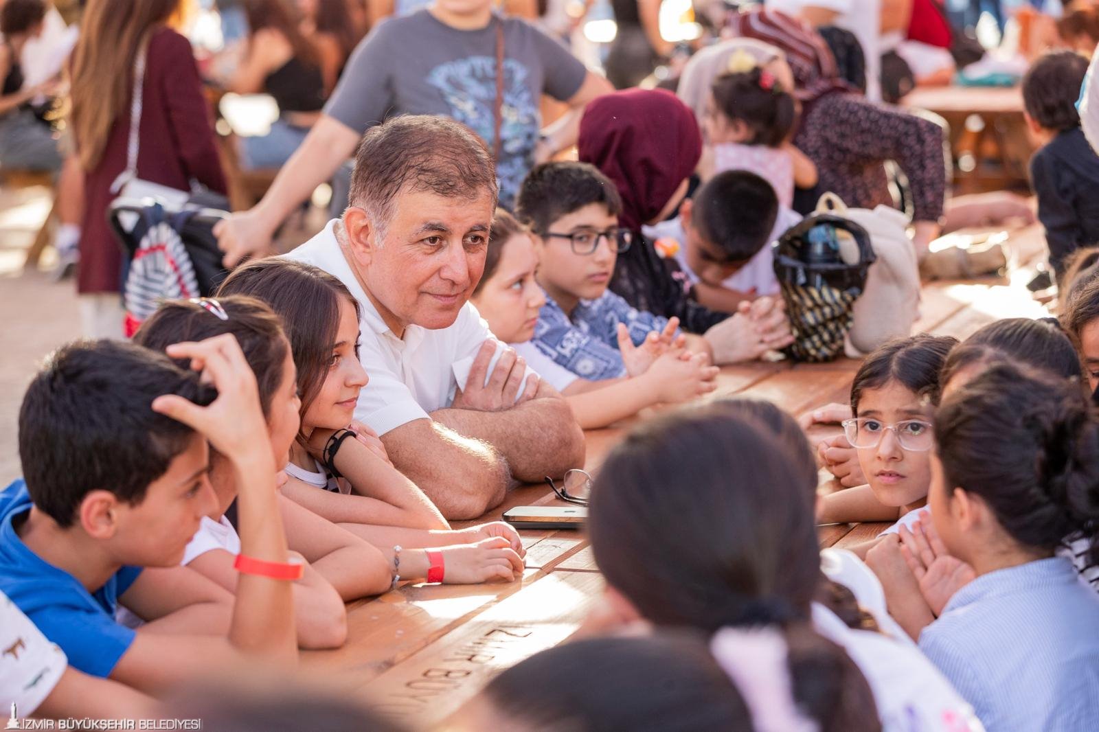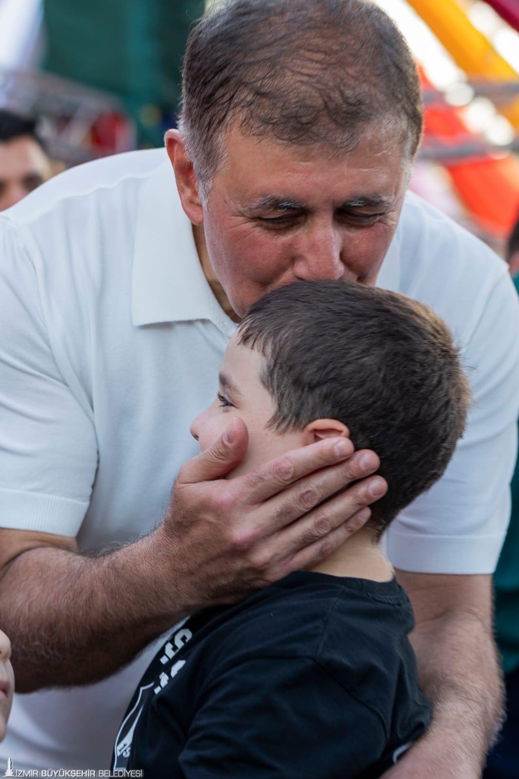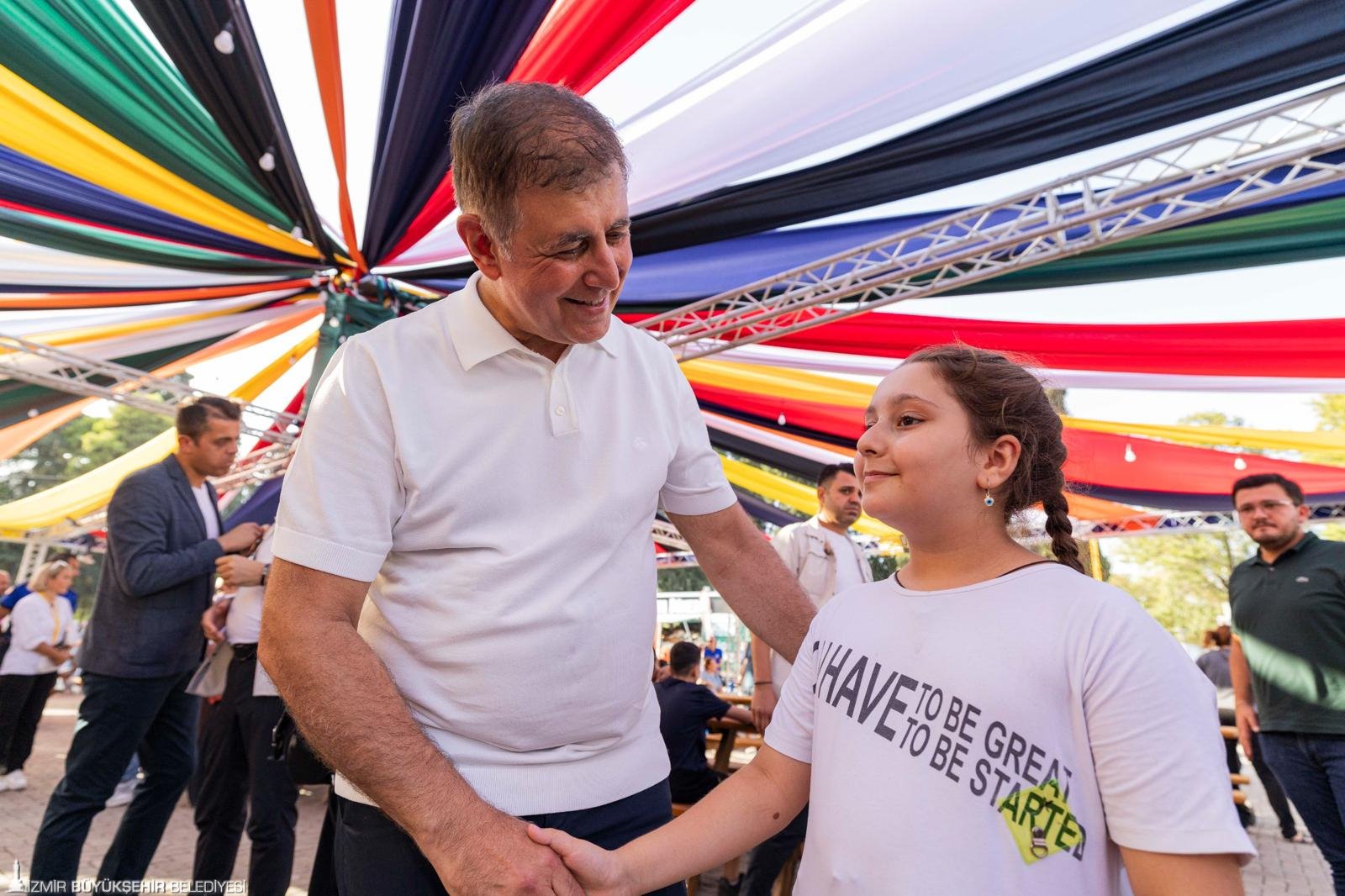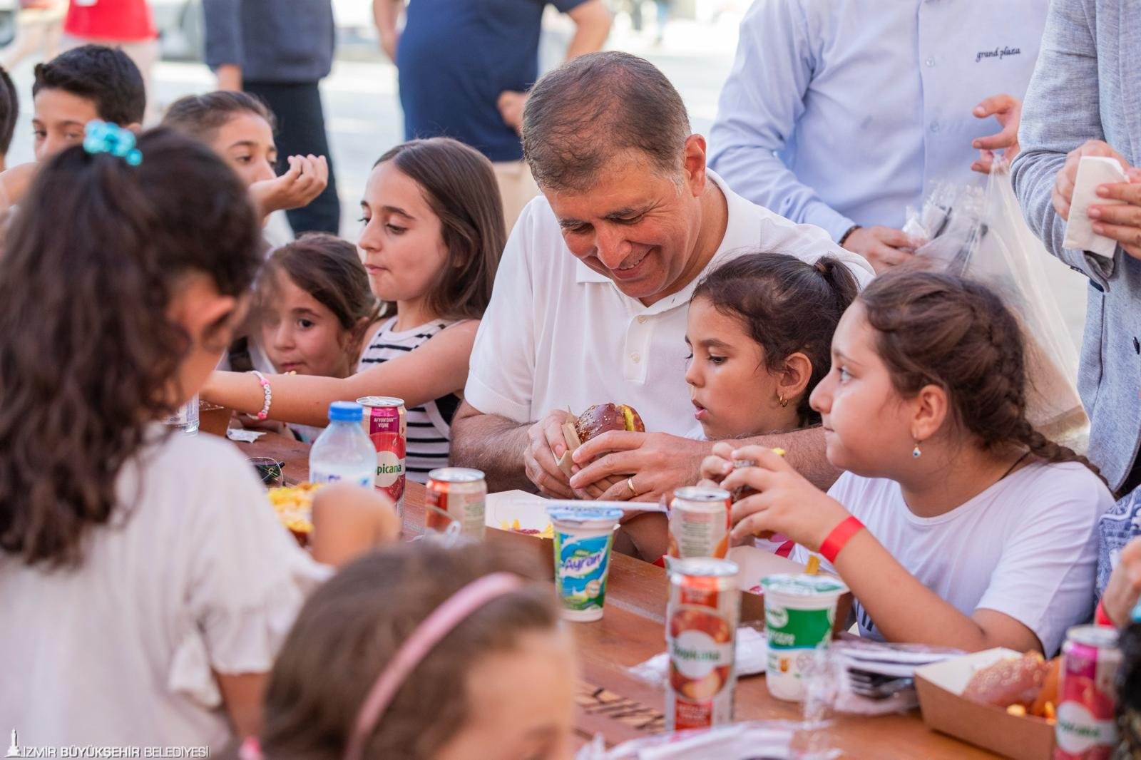 İzmir Büyükşehir Belediye Başkanı Dr. Cemil Tugay, 94. İEF’nin minik misafirleriyle buluştu. Büyükşehir Belediyesi’nin kentin farklı noktalarında bulunan Dayanışma Noktaları’ndan misafir edilen anne ve çocuklar, fuar alanında Başkan Tugay ile yemek yiyerek gönüllerince eğlendi.