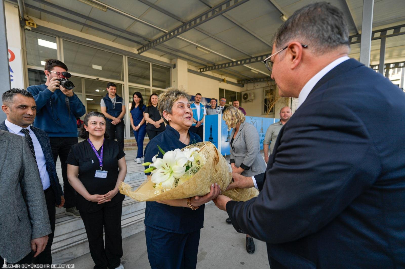 Ziyarette hastanenin en kıdemli üç hekimi Dr. İbrahim Kıyıcı, Dr. Melda Ongun Uçar ve Dr. Hüseyin Çetinel’e Başkan Tugay tarafından çiçek takdim edildi. Ayrıca tüm çalışanlara karanfil dağıtıldı.