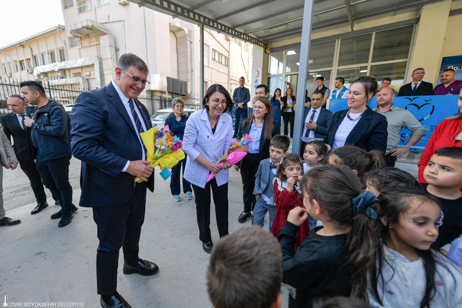 Kıdemli hekimlere çiçek, İzmirli vatandaştan Başkan Tugay’a davet