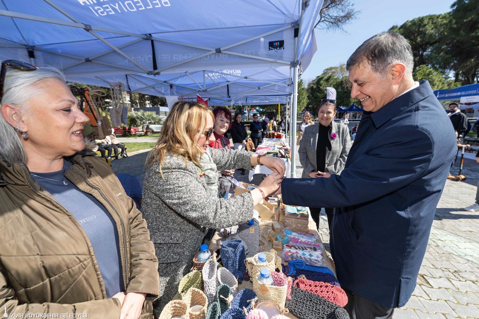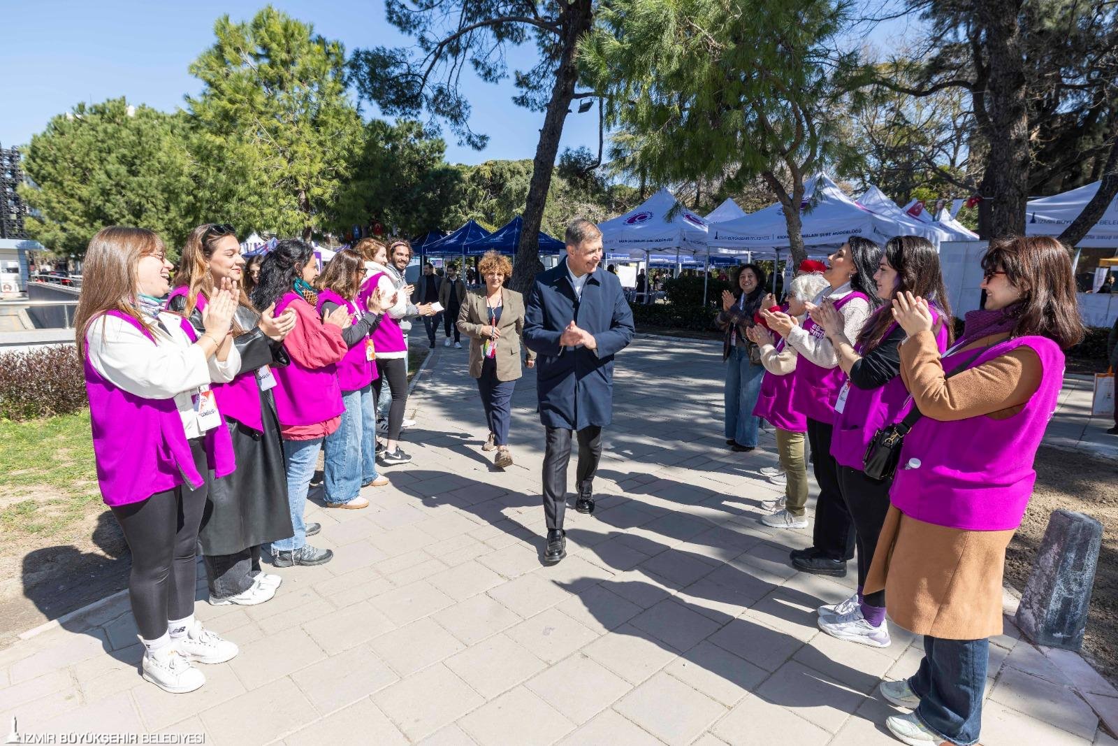 İzmir Büyükşehir Belediyesi, 8 Mart Dünya Emekçi Kadınlar Günü’nü “Aramızda Eşitlik Var” temasıyla üç gün süren etkinliklerle karşıladı. Kültürpark’tan ilçelere uzanan etkinliklerde kadın emeği ve dayanışma ön plana çıktı. İzmir Büyükşehir Belediye Başkanı Dr. Cemil Tugay, 8 Mart Dünya Emekçi Kadınlar Günü'nde Kültürpark'taki stantları ziyaret ederek üretici kadınlarla buluştu. Başkan Tugay, sivil toplum kuruluşları, dernekler ve vakıfların temsilcileriyle sohbet etti, çocuklarla fotoğraf çektirdi ve gençlerin taleplerini dinleyerek ihtiyaçları not aldı. Etkinlikte binlerce İzmirli, kadınların gücünü kutlamak için bir araya geldi.