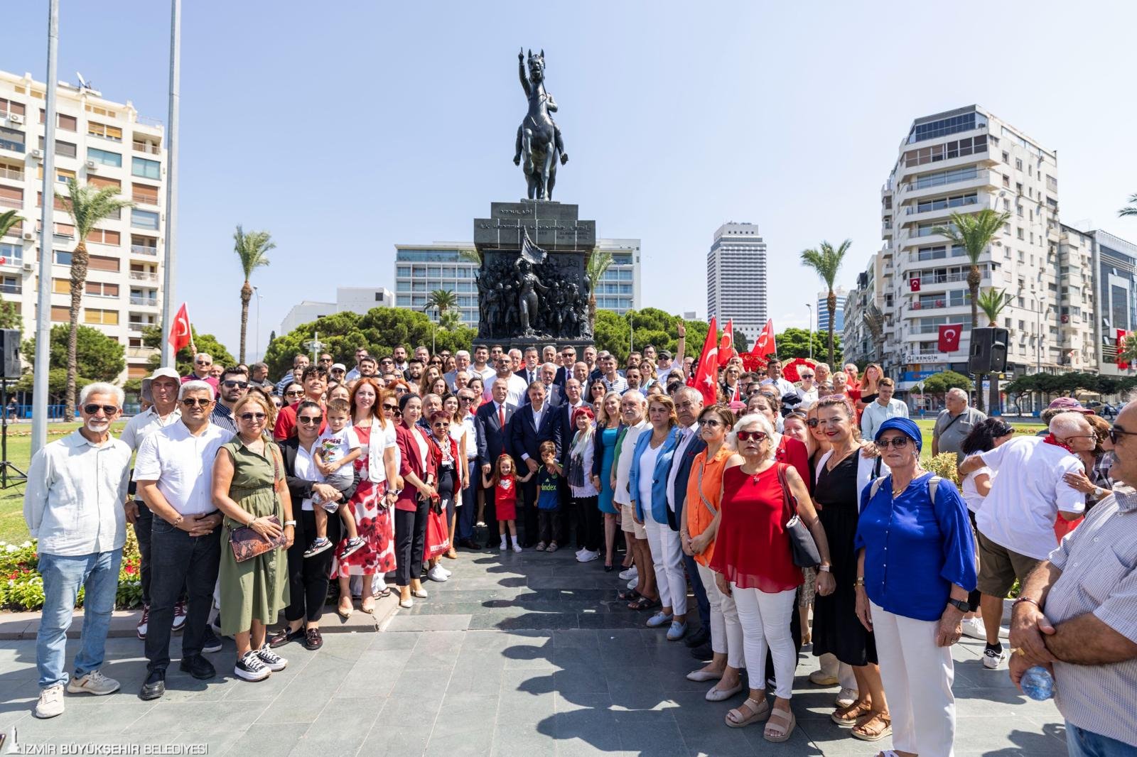 30 Ağustos Zafer Bayramı kutlamaları tüm coşkusuyla İzmir’de kutlanmaya devam ediyor. İzmir Büyükşehir Belediye Başkanı Dr. Cemil Tugay, Cumhuriyet Halk Partisi İzmir İl Başkanlığı tarafından Cumhuriyet Meydanı’nda düzenlenen çelenk törenine katıldı. Törene Başkan Dr. Cemil Tugay’ın yanı sıra CHP İzmir İl Sekreteri Tevfik Türk, geçmiş dönem CHP İzmir milletvekilleri Musa Çam ve Mustafa Moroğlu, ilçe belediye başkanları, il ve ilçe yöneticileri, meclis üyeleri ve çok sayıda partili katıldı. Törende CHP İl Sekreteri Tevfik Türk, CHP İzmir İl Kadın Kolları Başkanı Zahide Kurun, CHP İzmir İl Gençlik Kolları Başkanı Ruhsar Selis Çelik Kınacı, meydandaki Atatürk Anıtı’na çelenk bıraktı.