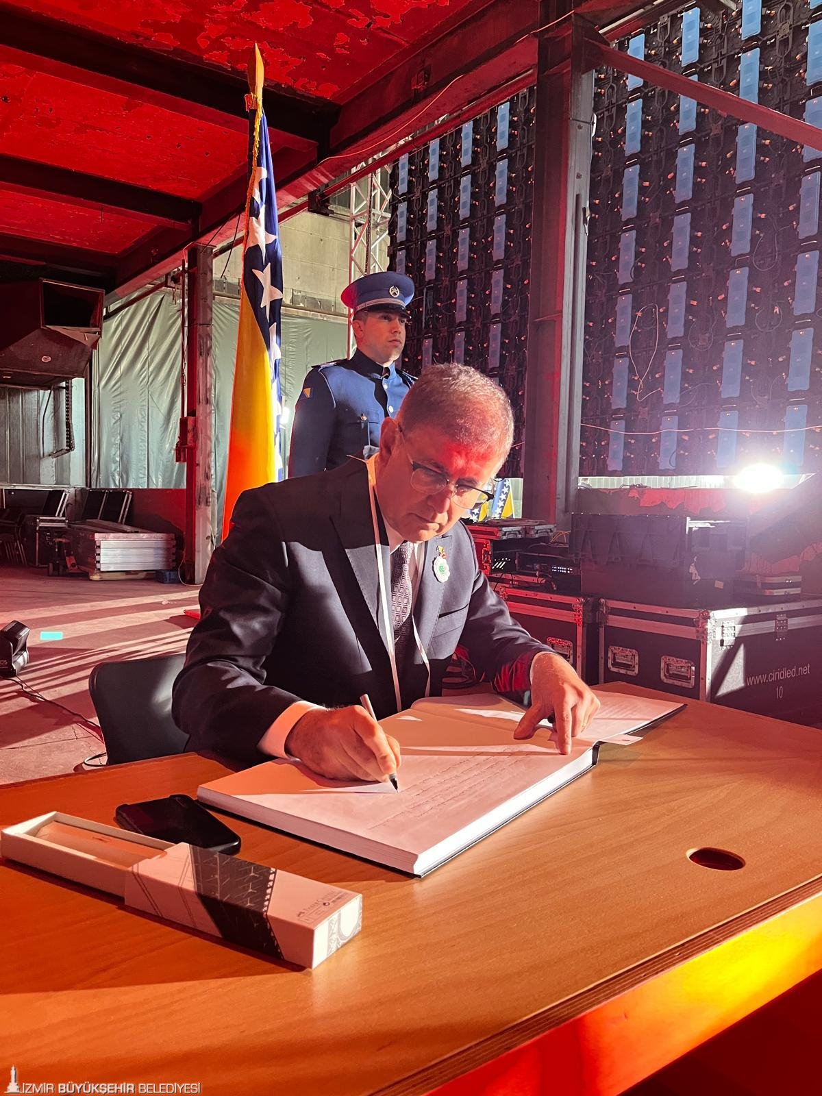 İzmir Büyükşehir Belediye Başkanı Dr. Cemil Tugay, Bosna Hersek'in doğusundaki Srebrenitsa'da 1995'te Sırp birliklerince 8 binden fazla Boşnak sivilin acımasızca katledildiği soykırımın 30'uncu yılı dolayısıyla düzenlenen anma programına katıldı. Sabah erken saatlerde Potoçari’ye gelen Başkan Dr. Cemil Tugay, küratörler Azir Osmanović, Elma Hašimbegović ve Elma Hodžić tarafından hazırlanan "Geçenlerin (Geçmeyenlerin) Adımları" sergisini ziyaret etti. Sonrasında birçok ülkeden temsilcinin bulunduğu anma törenine katılan Başkan Tugay, savaş sırasında 25 bin Boşnak’ın canlarını kurtarmak için sığındığı eski akü fabrikasına gelerek buradaki taziye defterini imzaladı.