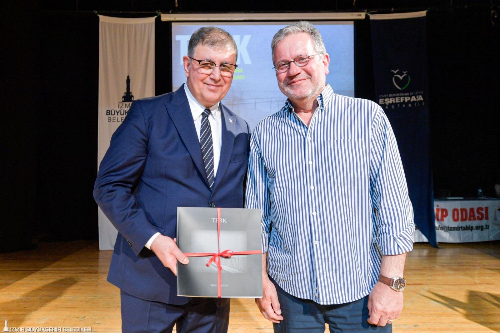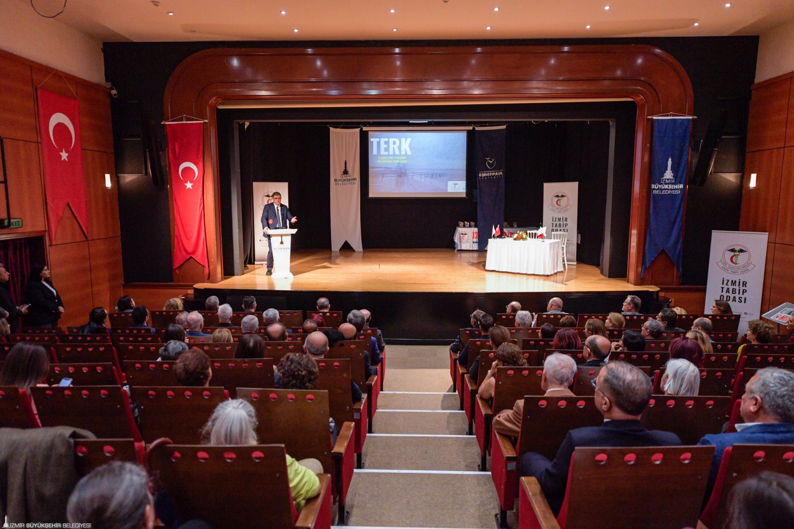 İzmir Büyükşehir Belediyesi, İzmir Tabip Odası iş birliği ile 14 Mart Tıp Bayramı etkinlikleri kapsamında hekimlerin yurt dışına gitmesini, sağlıkta dönüşümü ve İzmir hastanelerinin tarihini konu alan “Terk” başlıklı panel düzenledi. İzmir Sanat’ta gerçekleştirilen panele katılarak meslektaşları ile bir araya gelen İzmir Büyükşehir Belediye Başkanı Dr. Cemil Tugay, burada hem sağlık politikalarına hem de İzmir Büyükşehir Belediyesi Eşrefpaşa Hastanesi’nde verilen sağlık hizmetlerine değindi. Başkan Tugay, “Hiç kimse unutmasın; bu ülkenin de dünyadaki her insanın da iyi hekimlere ihtiyacı var. İyi hekimlerin de burada olmasına ihtiyaç var. Bu iyilik, önce mesleğin anlamını anlamış, o karakteri kendinde oturtmuş insan olmaktır, sonra da mesleğini yeterli şekilde icra etmektir” dedi.