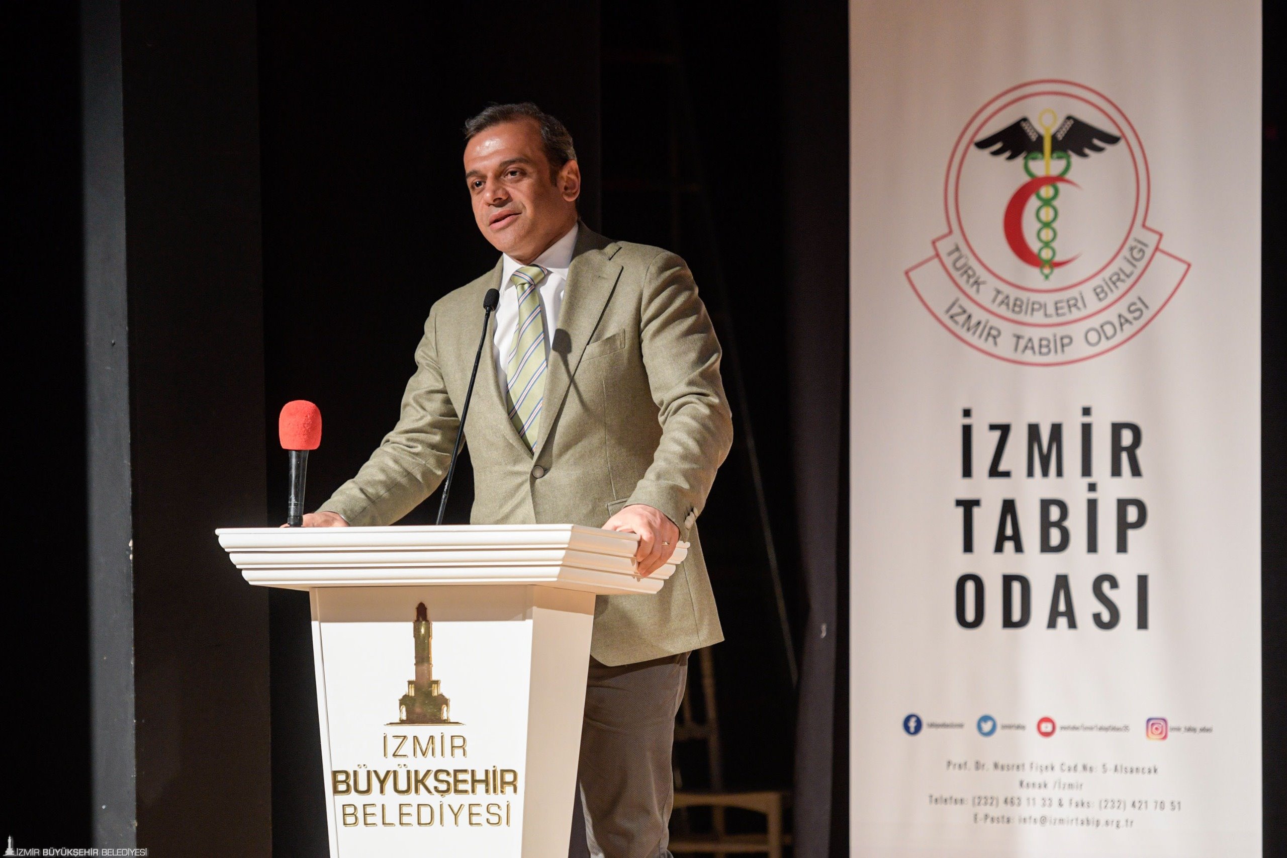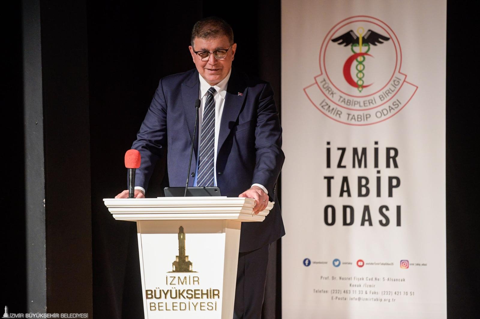 İzmir Büyükşehir Belediye Başkanı olarak bulunduğu konumun, temsiliyet anlamında önemli bir sorumluluk taşıdığını ifade eden Başkan Tugay, “Çevremizde bu kadar kötü şeyler oluyorken, hele ki sağlık sistemi ağır hastalığa yakalanmışken buna duyarsız kalmak, hocalarımızın bize öğrettiği hekimliğin ruhuna yakışmaz. Bizi böyle yetiştirdiler. Hocalarımız bu ülkeyi sevmeyi, insanlarına sahip çıkmayı, insanlara adaletli davranmayı, hastayla aramıza parayı koymamayı, insanları hasta etmemeyi öğretti. Bu sistemin yetiştirdiği bir hekim olarak buradayım ve bu anlayışla hizmet üretiyoruz” ifadelerini kullandı.