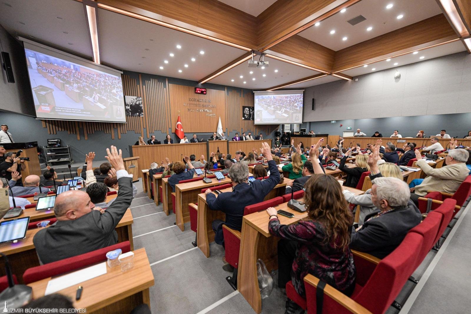 İzmir Büyükşehir Belediyesi’nin nisan ayı olağan meclis toplantısının üçüncü birleşimi Kültürpark Fuar Alanı 4 No’lu Hol’deki meclis toplantı salonunda yapıldı. İzmir Büyükşehir Belediye Başkanı Dr. Cemil Tugay’ın başkanlığındaki oturumda gündemdeki maddeler oylandı ve Büyükşehir Belediyesi ile ESHOT Genel Müdürlüğü’nün 2024 yılı faaliyet raporları görüşüldü. 7 saatlik toplantıda her iki kurum raporu da oy çokluğuyla kabul edildi.