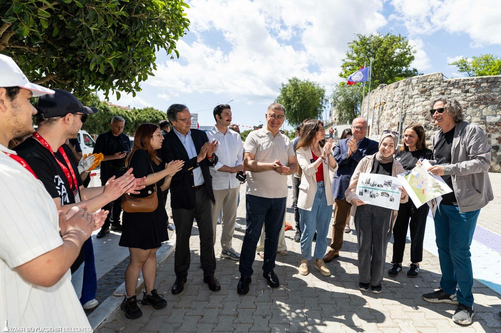 İzmir Büyükşehir Belediye Başkanı Dr. Cemil Tugay, 19 Mayıs Atatürk’ü Anma, Gençlik ve Spor Bayramı kutlamaları kapsamında İzmir Büyükşehir Belediyesi öncülüğünde Çeşme, Karaburun, Seferihisar ve Foça’da yürütülen “Tasarımcılar İzmir'de” etkinliğine katıldı. Mimarlık, şehir planlama, grafik tasarımı, ürün tasarımı, sanat, iletişim ve turizm gibi birçok disiplinden 18-30 yaş arası üniversite öğrencisi ve mezun gençlerin yer aldığı etkinliğin Çeşme etabını ziyaret eden Başkan Dr. Cemil Tugay, Alaçatı’da çalışma yürüten genç tasarımcılarla buluştu. Başkan Tugay’a Çeşme Belediye Başkanı Lâl Denizli, İzmir Planlama Ajansı (İZPA) Başkanı Prof. Dr. Koray Velibeyoğlu, İzmir Büyükşehir Belediyesi ile Çeşme Belediyesi bürokratları eşlik etti.