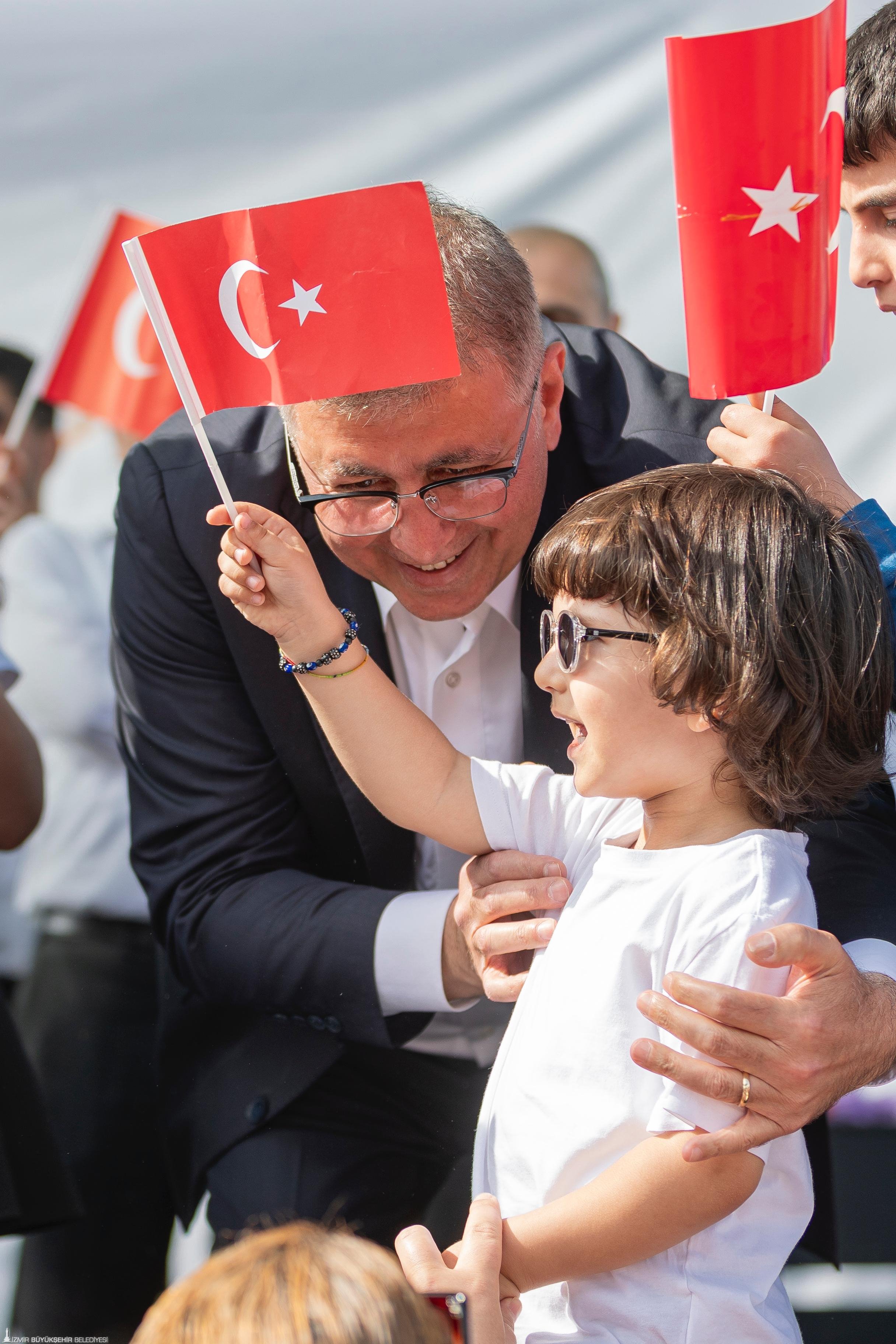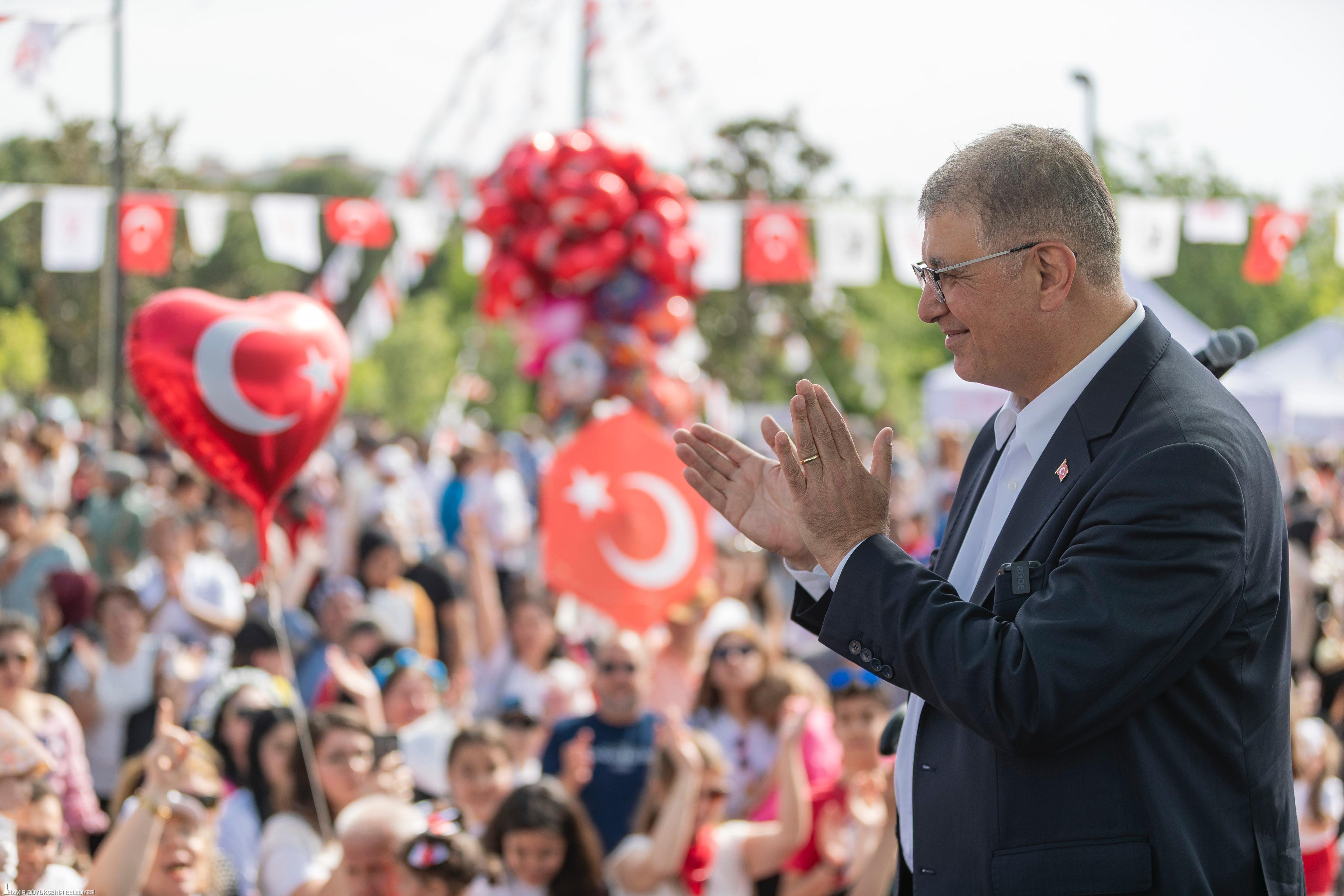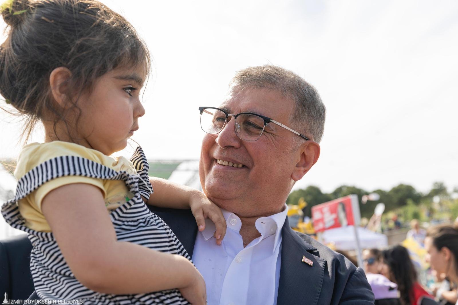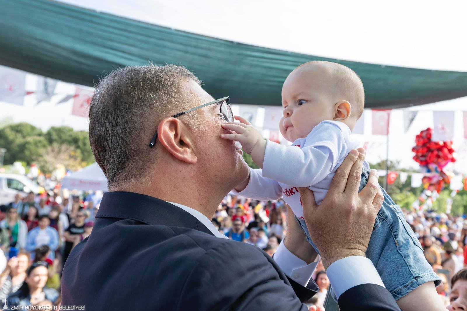 23 Nisan Ulusal Egemenlik ve Çocuk Bayramı’nı kutlayan Başkan Tugay, "Sevgili çocuklar ve sevgili aileleri; bu özel günde sizlerle olmanın büyük mutluluğu içinde hepinizin bayramını yürekten kutluyorum. Bugün sabahtan bu yana İzmir'in farklı yerlerinde çocuklarımızla birlikte olmaya çalıştım. Binlerce çocuğumuzla sarıldık. Burada olduğu gibi hepsi göğüslerinde Türk bayrağı, Atatürk resimleri ile birlikte bizlere aslında bir mesaj veriyorlar. Bu mesajı özellikle büyüklerin, şu anda üzerinde sorumluluk olan herkesin alması gerektiğini düşünüyorum. Çocuklarımız ve gençlerimiz diyorlar ki 'Biz büyük ve asil bir milletin çocuklarıyız, evlatlarıyız. Bu ülkeye başını önüne eğmek, birilerine teslim olmak yakışmaz. Bize büyük, güçlü, refah bir ülkede adalet içinde özgürlüğümüzü yaşayarak, doyasıya çalışarak dünyanın en büyük ülkelerinden birinin vatandaşı olmak yaraşır.' Bunun için, çocuklarımız için çalışır mıyız? Bu mesajı almamız gereken bir gündeyiz” ifadelerini kullandı. Başkan Tugay, “Bugün güzel bir gün, bugün bayram, bugün çocuklarımız eğlensin, biz de onların mutluluğunu paylaşalım. Yürek yüreğe olalım. Hepinizi çok seviyoruz, bayramınız kutlu olsun” diyerek sözlerini tamamladı.