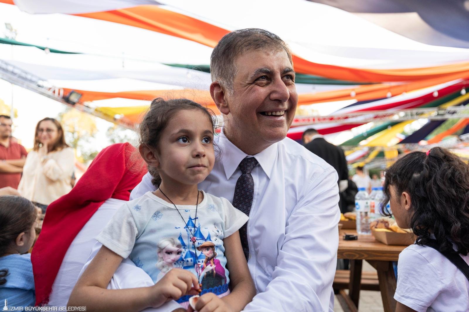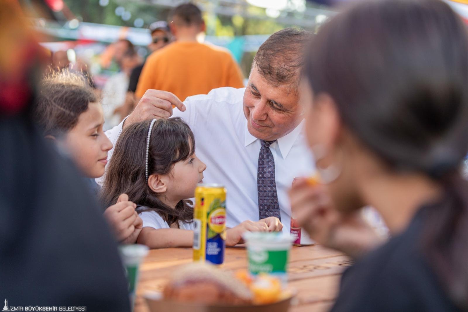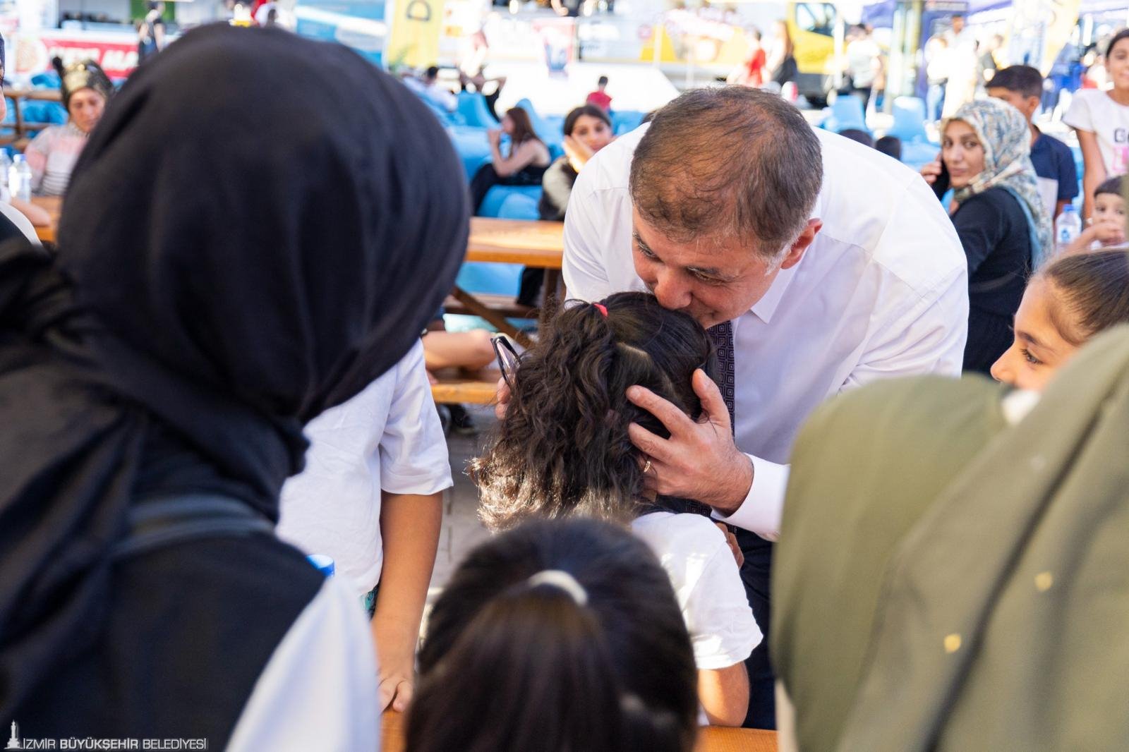 İzmir Büyükşehir Belediye Başkanı Dr. Cemil Tugay, kentin farklı noktalarında bulunan Dayanışma Noktalarından misafir edilen anne ve çocuklarla 94. İzmir Enternasyonal Fuarı’nda buluşmaya devam ediyor. Kültürpark’taki yeme içme alanında çocuklarla bir araya gelen Başkan Dr. Cemil Tugay, miniklerin taleplerini dinledi.